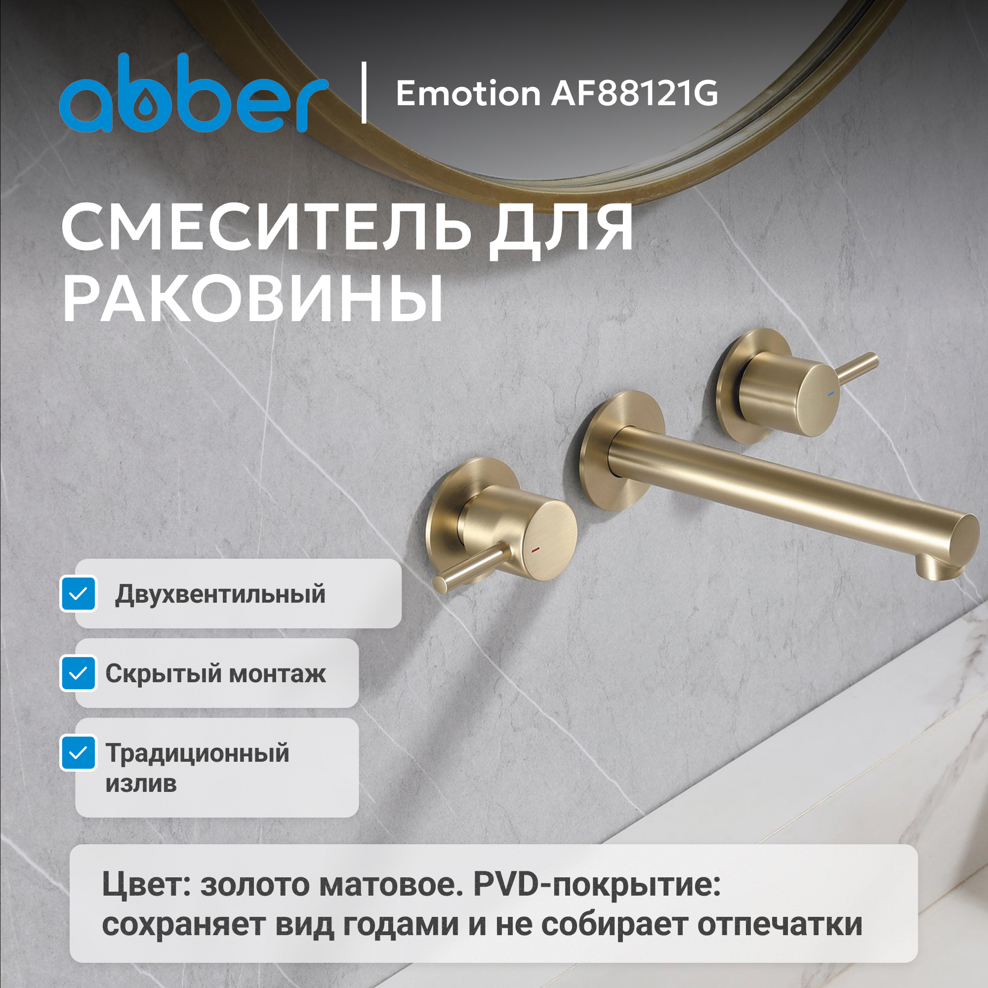 Смеситель ABBER Emotion AF88121G для раковины скрытого монтажа, золото матовое
