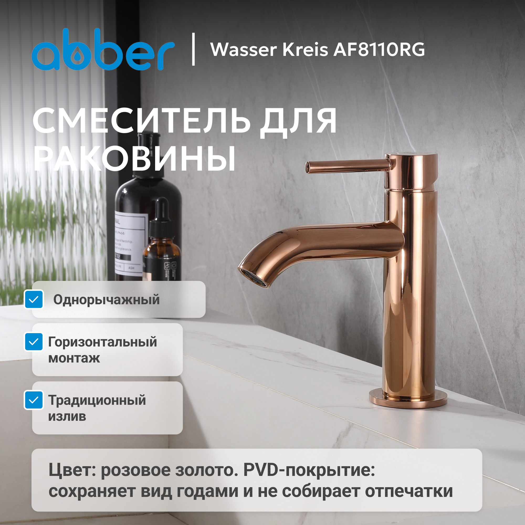 Смеситель ABBER Wasser Kreis AF8110RG для раковины, розовое золото