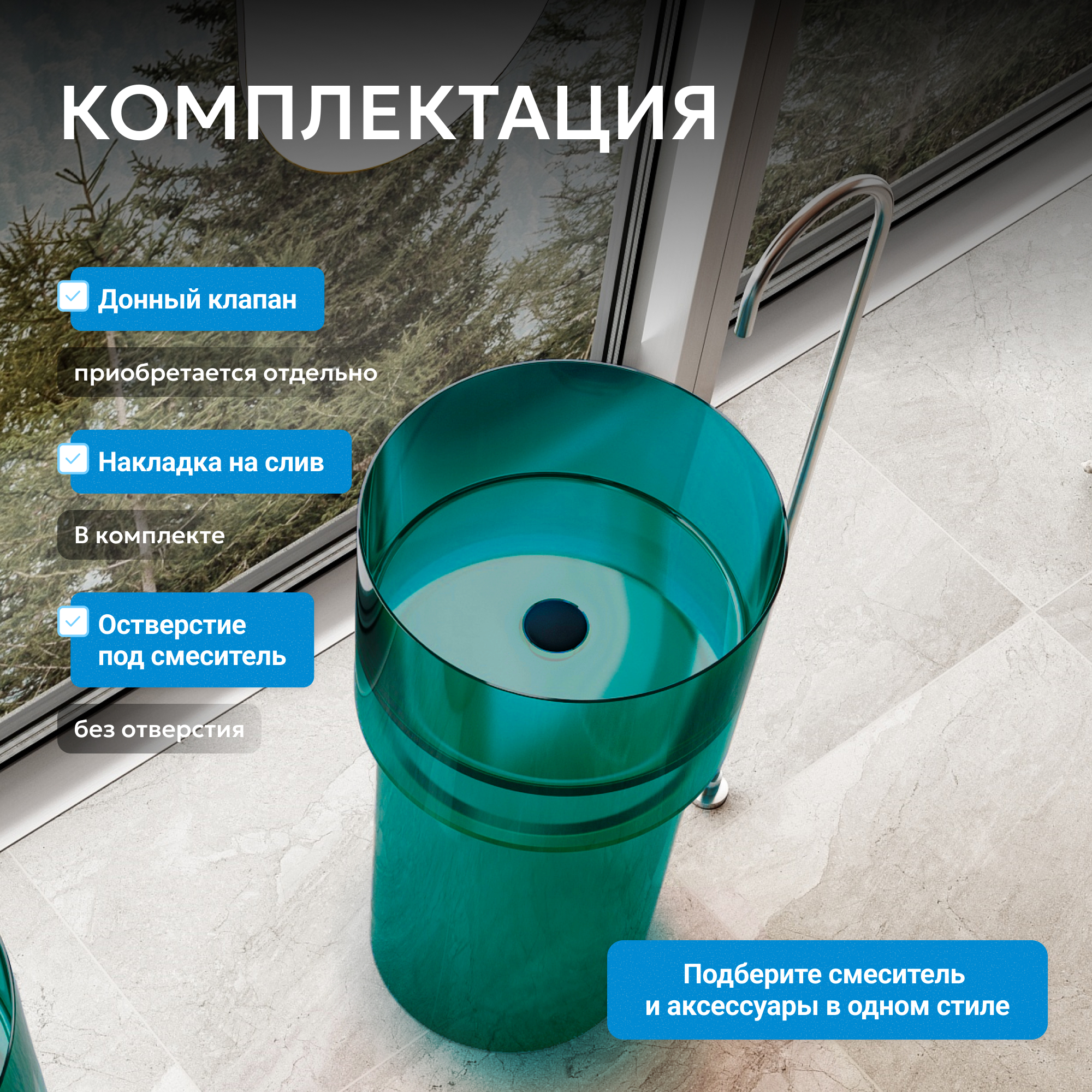 Раковина отдельностоящая прозрачная ABBER Kristall AT2701Aquamarin-H бирюзовая