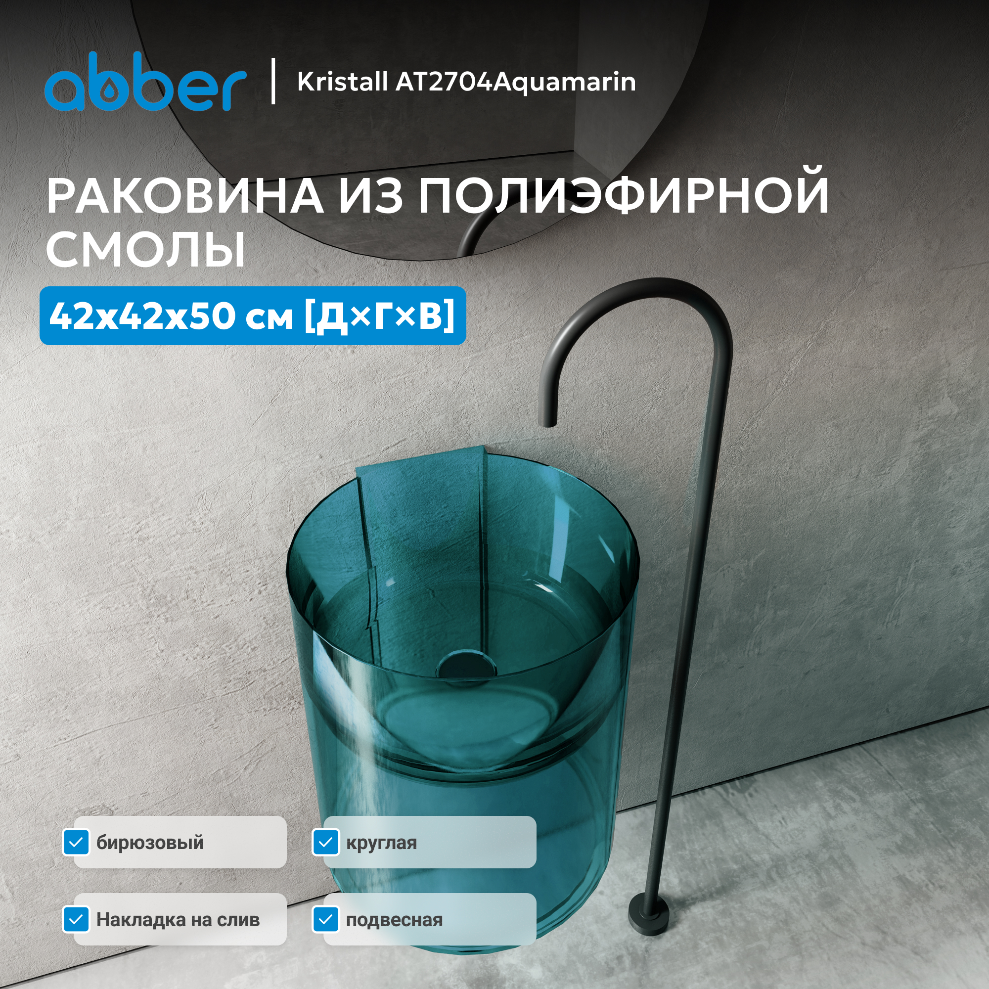 Раковина подвесная прозрачная ABBER Kristall AT2704Aquamarin бирюзовая