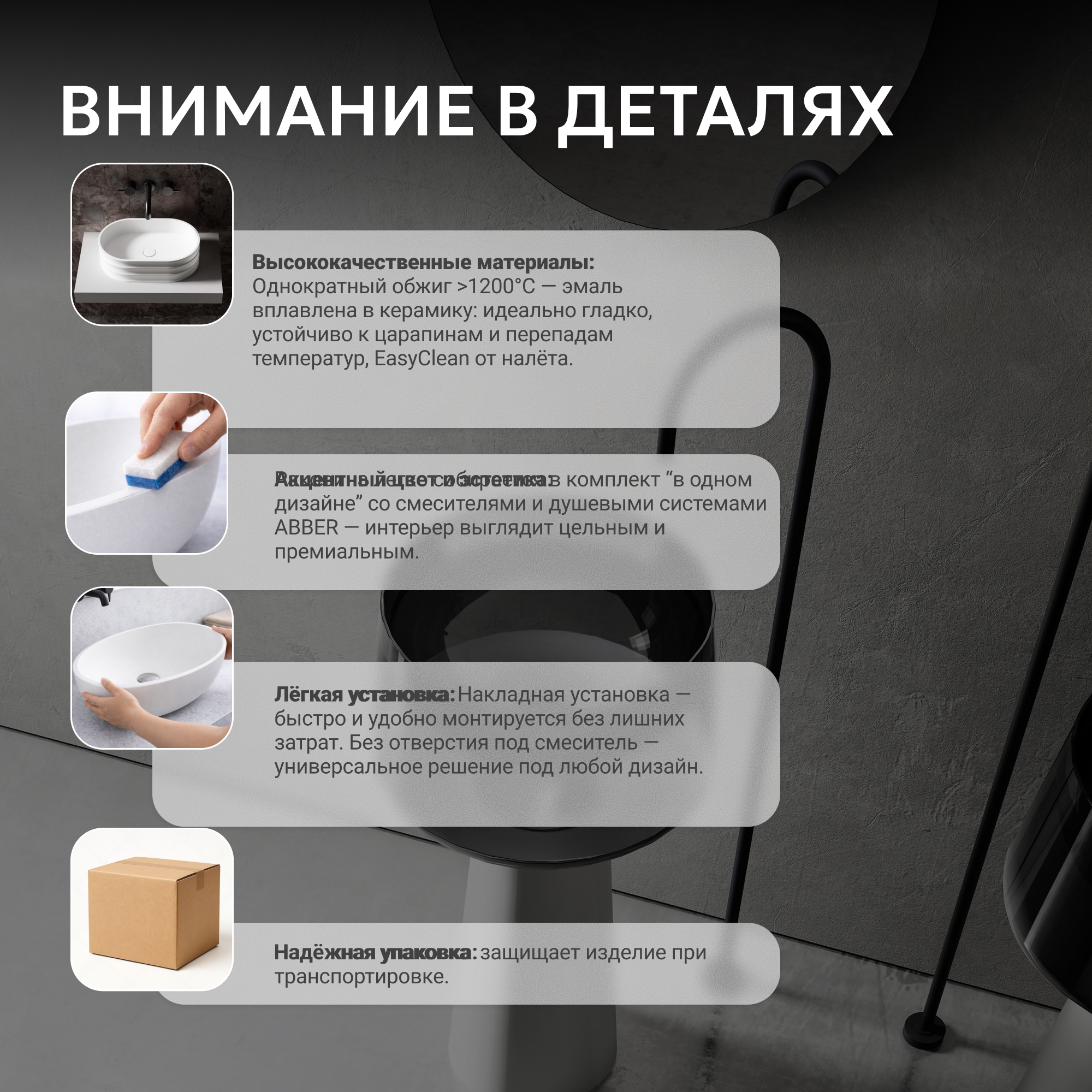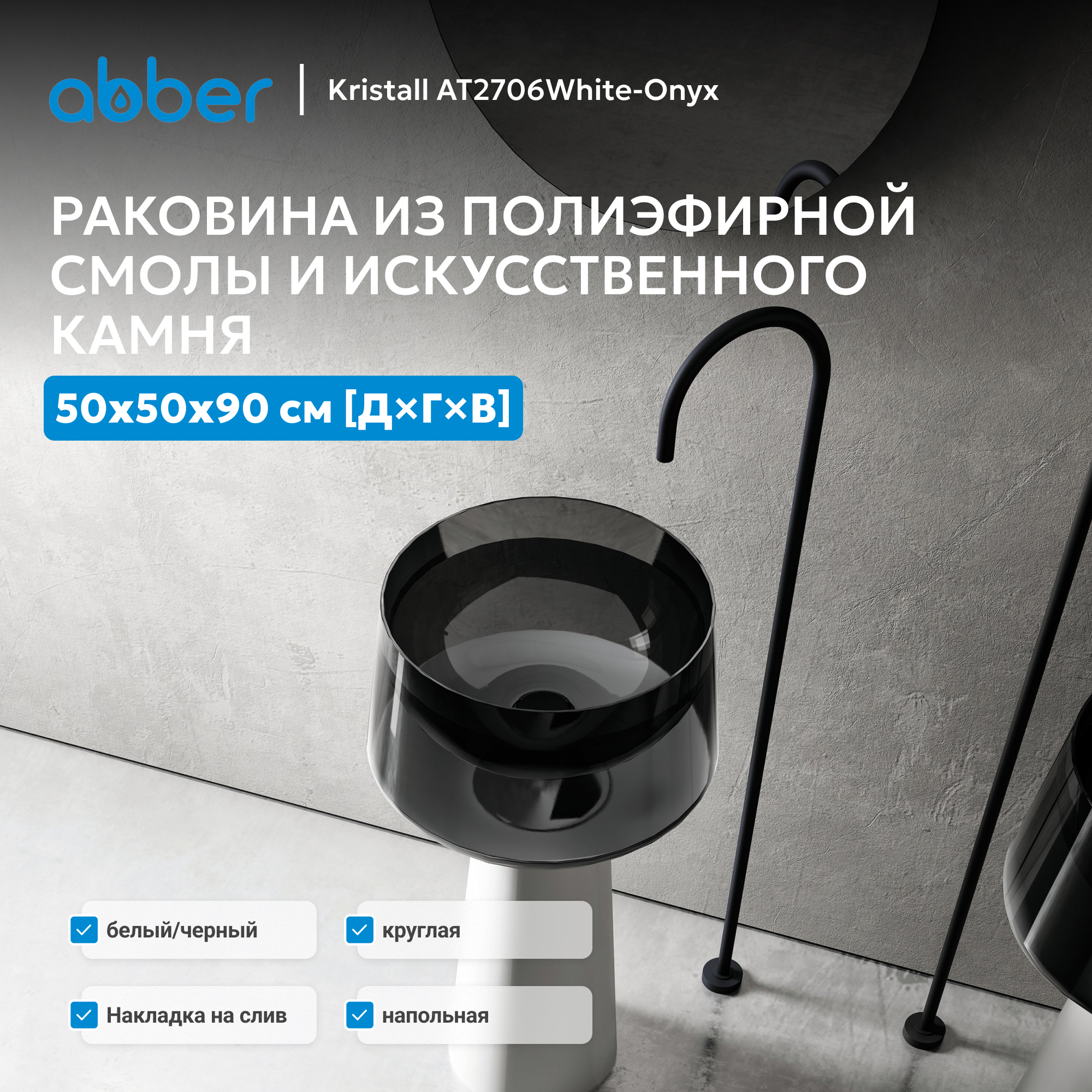 Раковина отдельностоящая прозрачная ABBER Kristall AT2706White-Onyx белый/черный