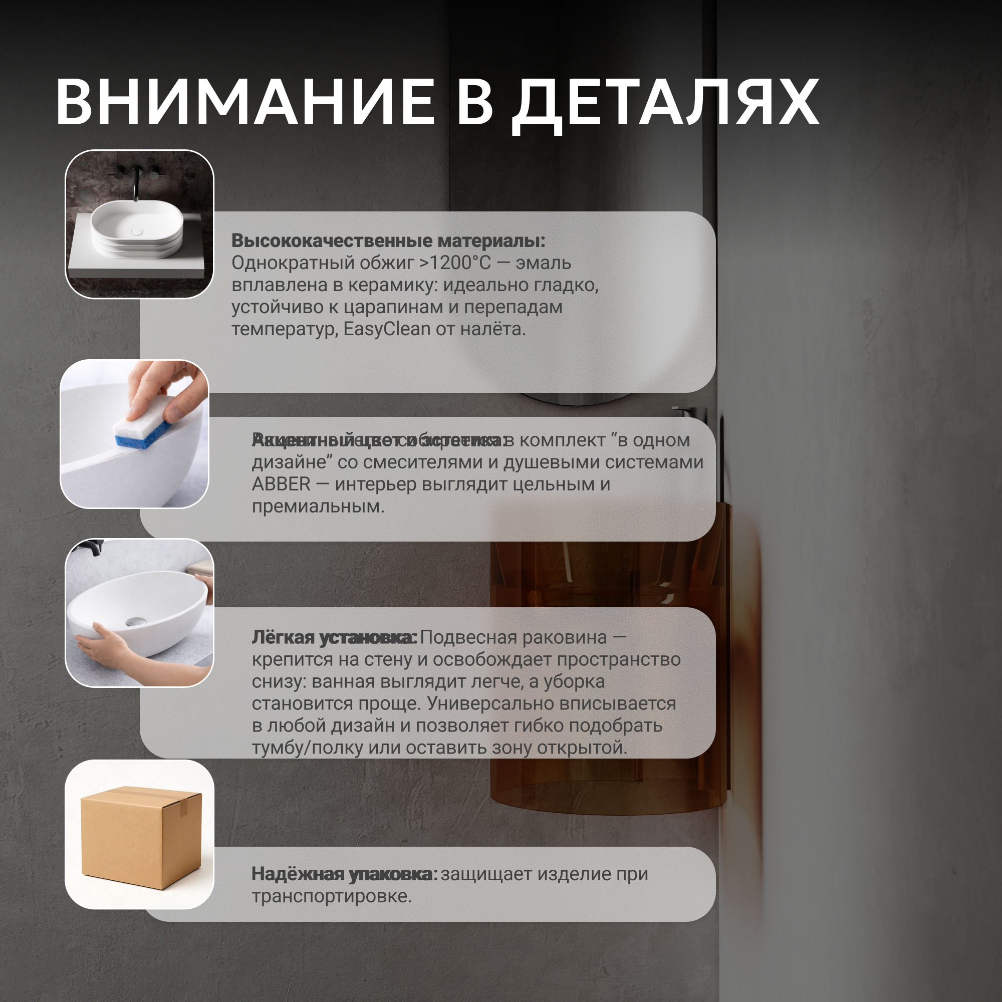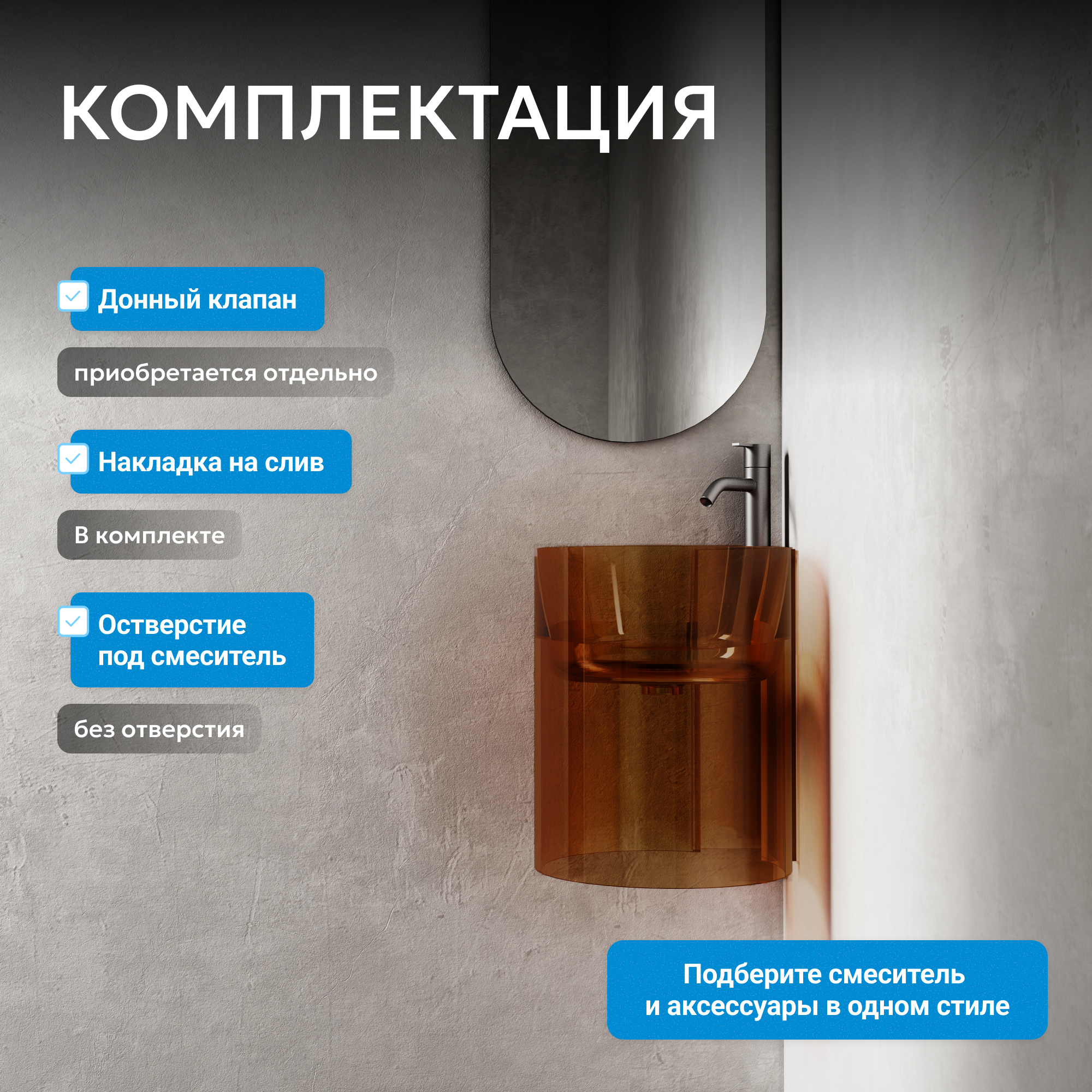 Раковина подвесная прозрачная угловая ABBER Kristall AT2705Opal коричневая