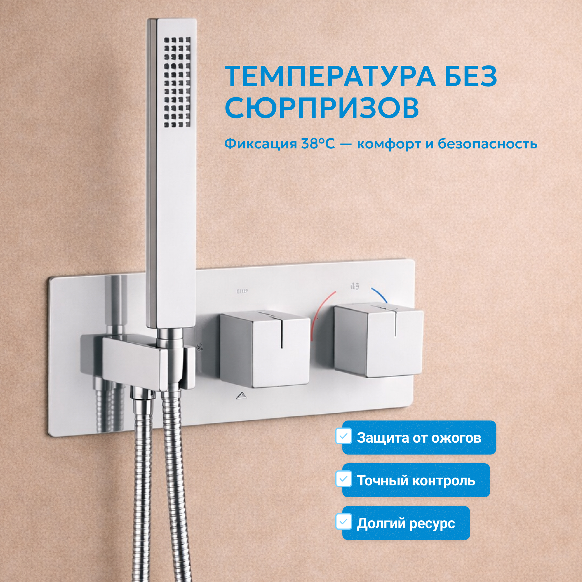 Для корректной работы термостатического смесителя температура горячей воды должна быть не ниже 60° С и не выше 80° С.
