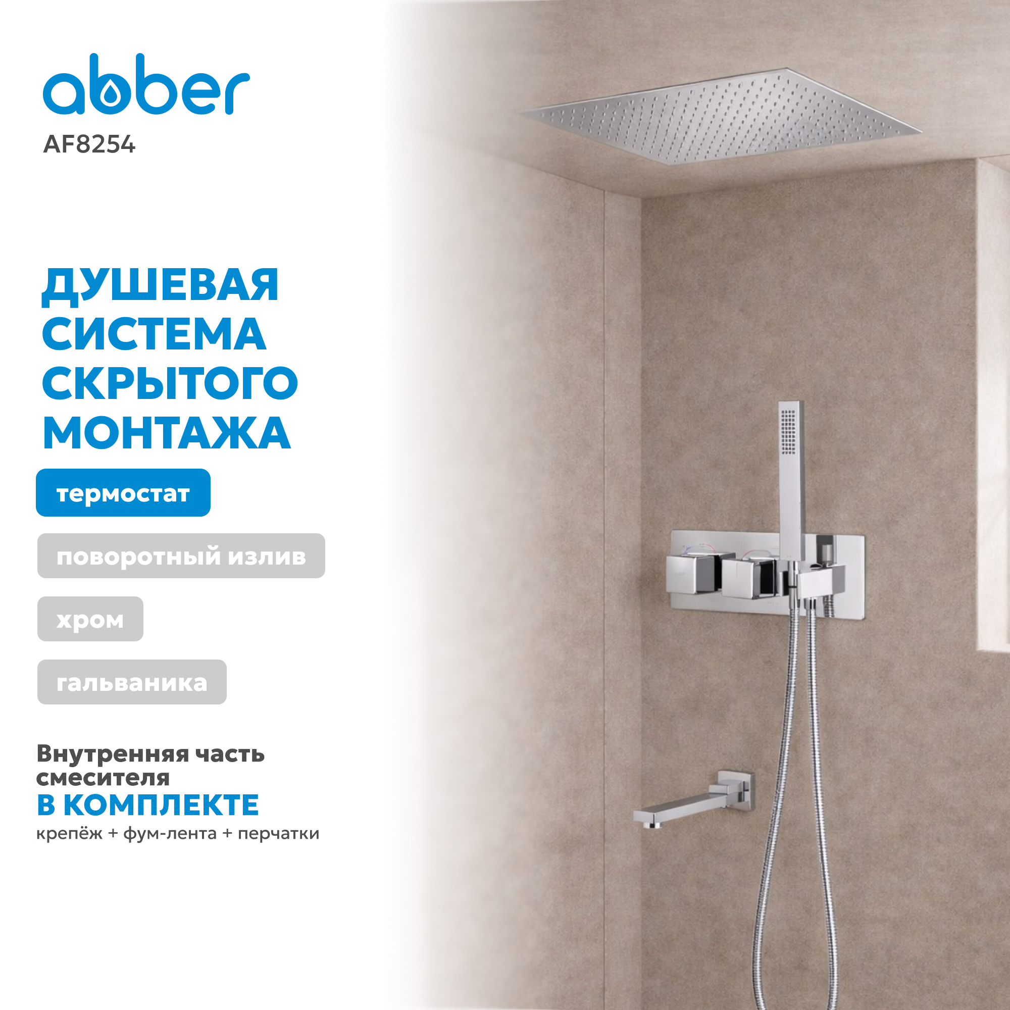 Душевая система ABBER Daheim AF8254 скрытого монтажа с изливом, термостат, хром