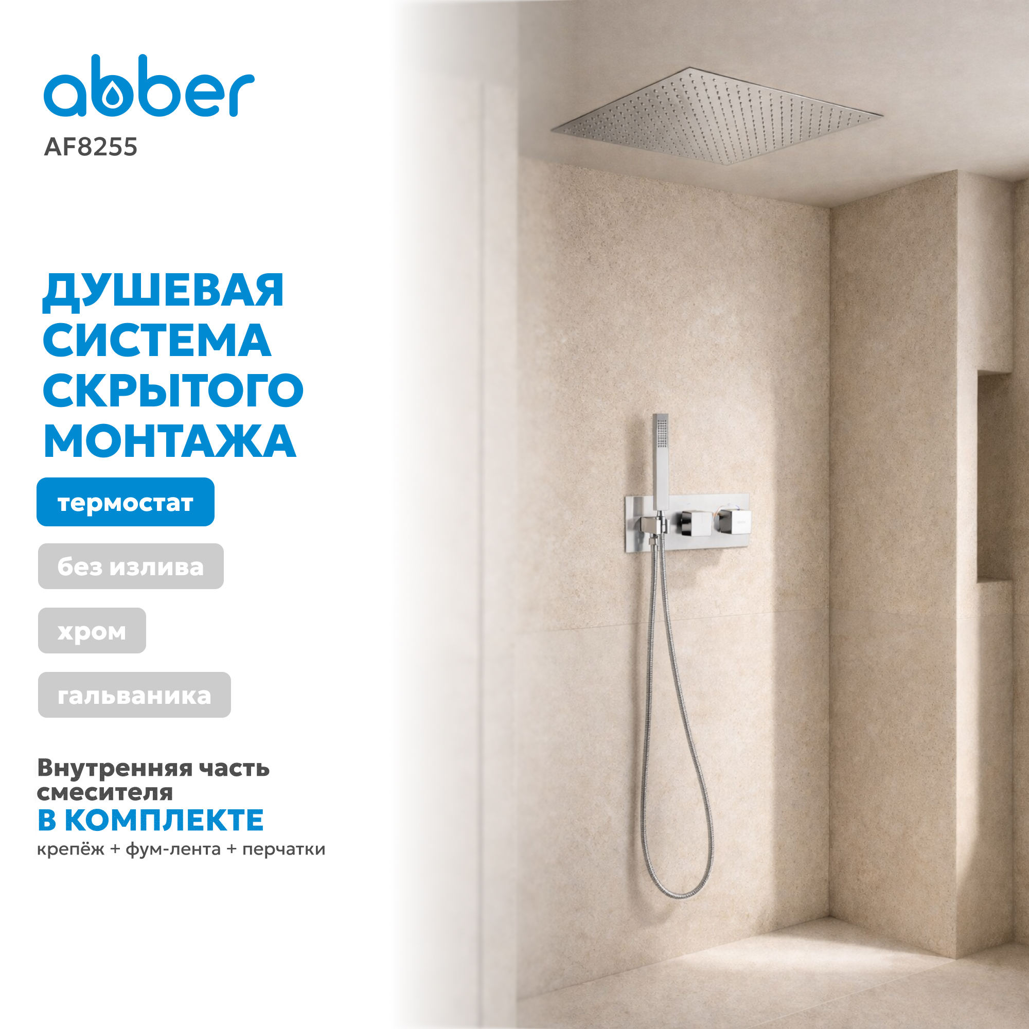 Душевая система ABBER Daheim AF8255 скрытого монтажа без излива, термостат, хром