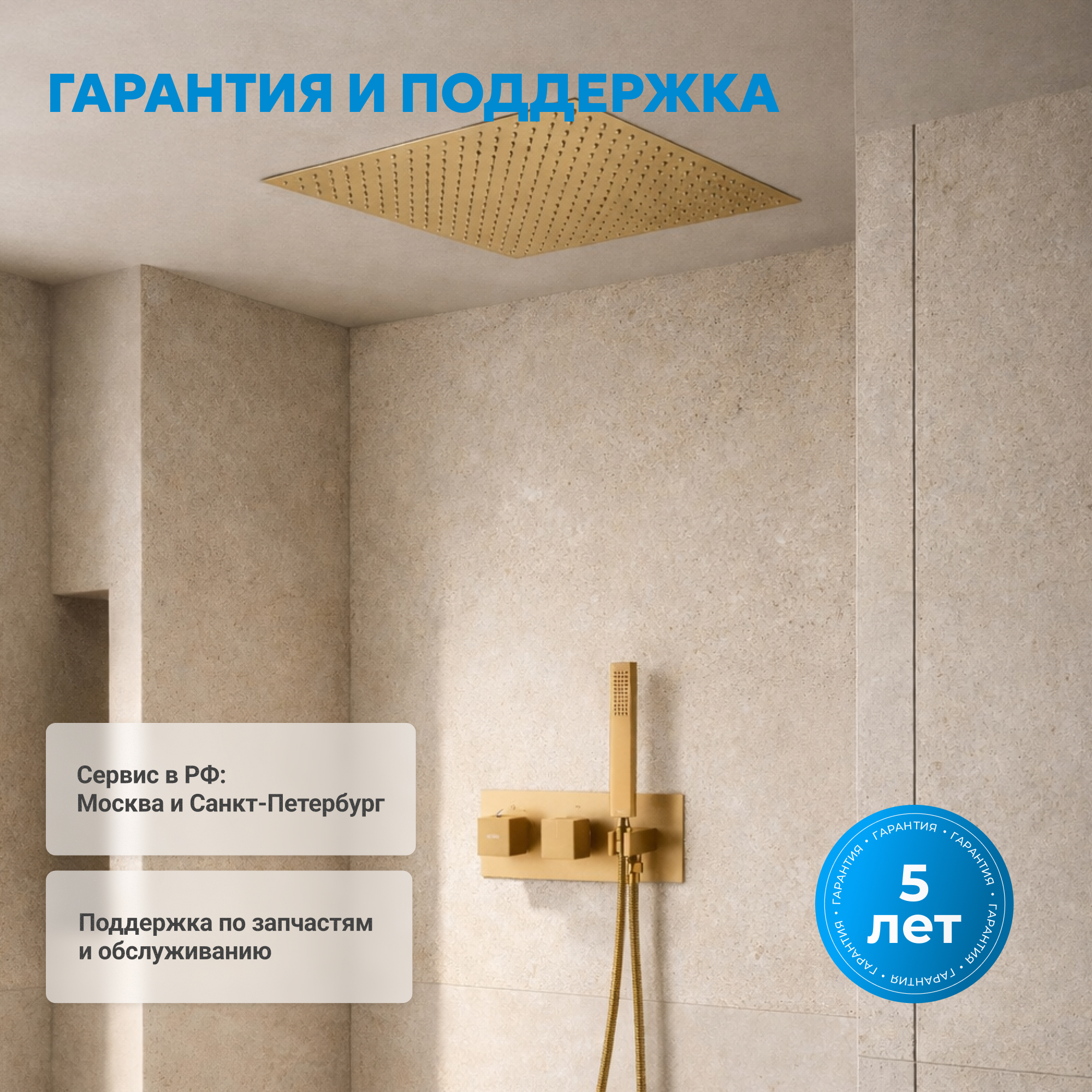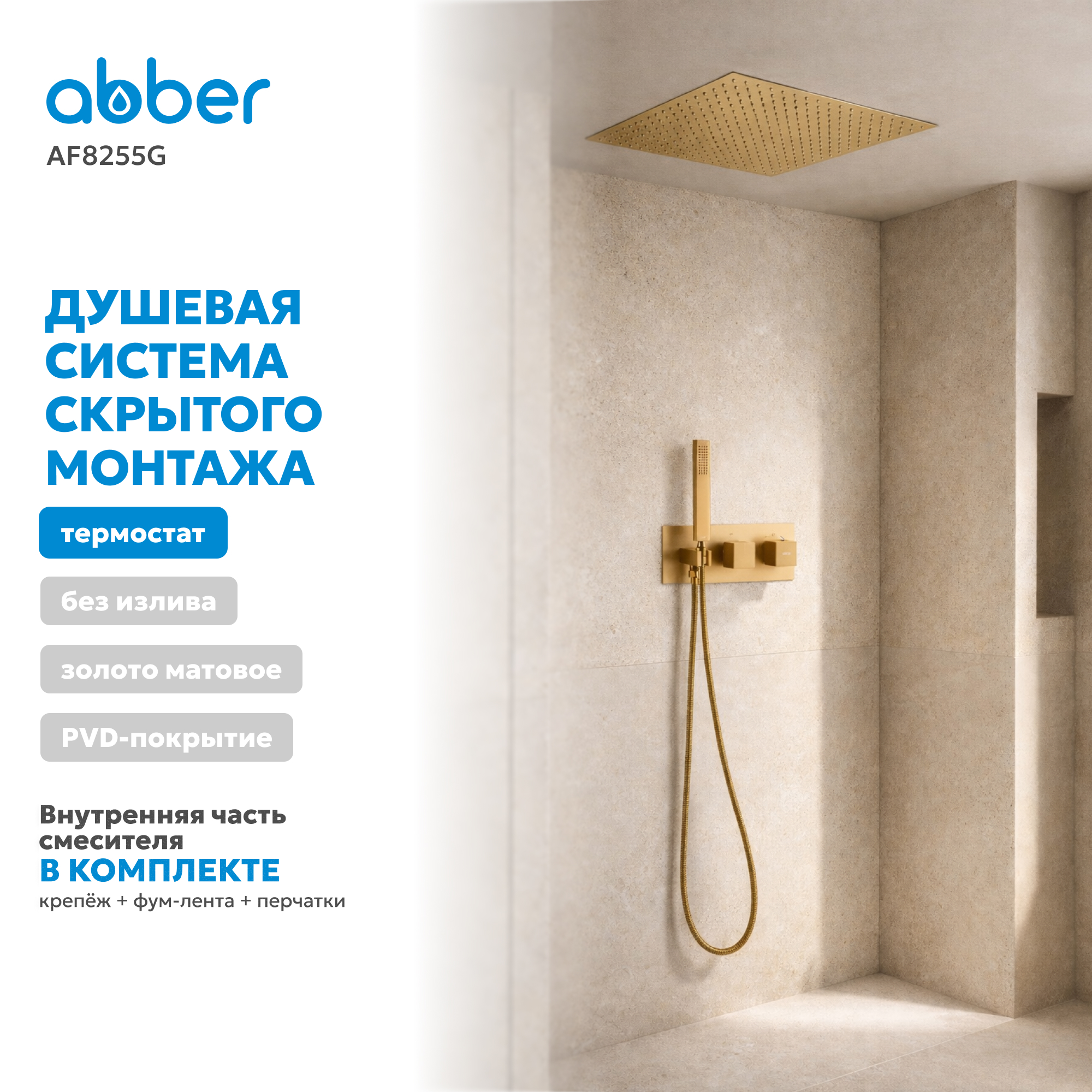 Душевая система ABBER Daheim AF8255G скрытого монтажа без излива, термостат, золото матовое