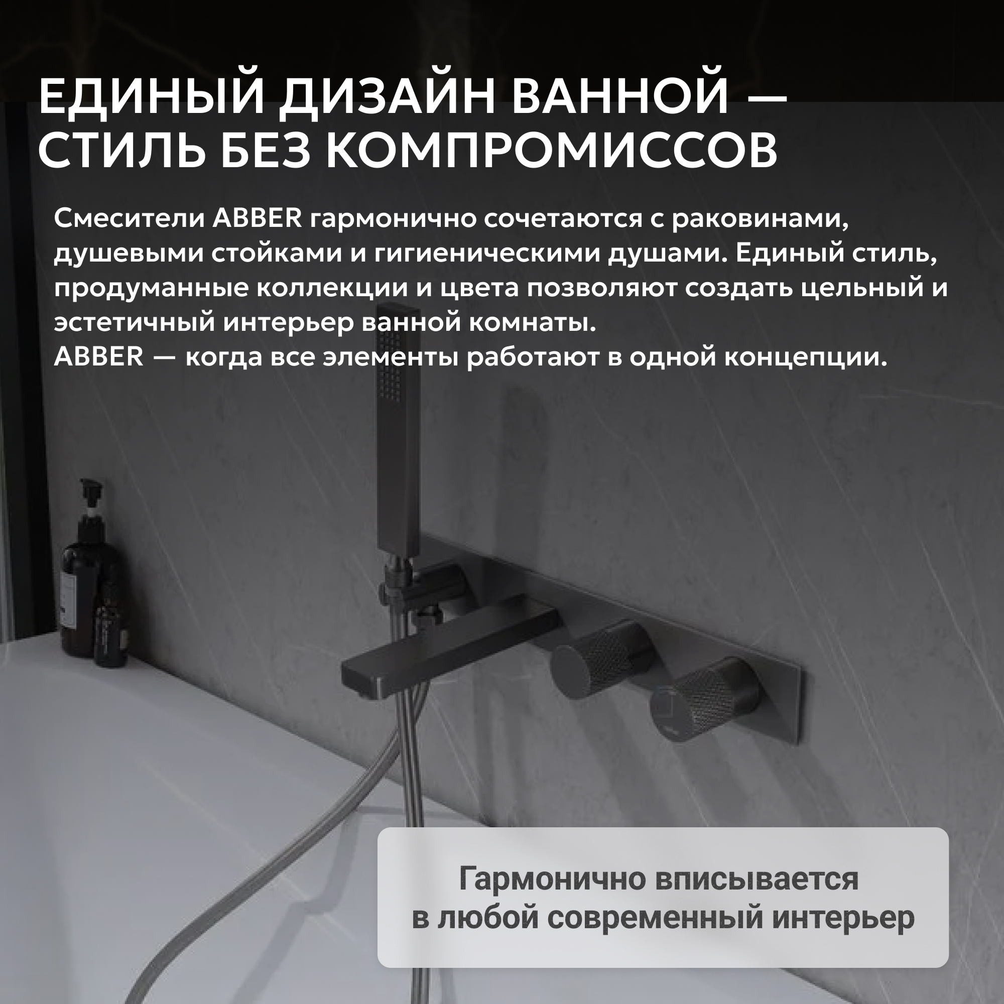 Корпус всех смесителей ABBER изготавливается из латуни техникой цельной отливки при атмосферном давлении, что обеспечивает высокую прочность изделия и устойчивость к перепадам давления.