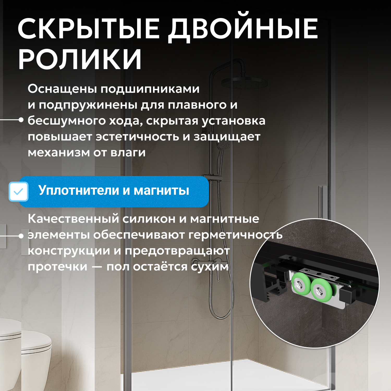 ширина пристенного профиля 60 мм, Soft-close доводчики позаботятся о плавной и бесшумной фиксации двери в крайних положениях