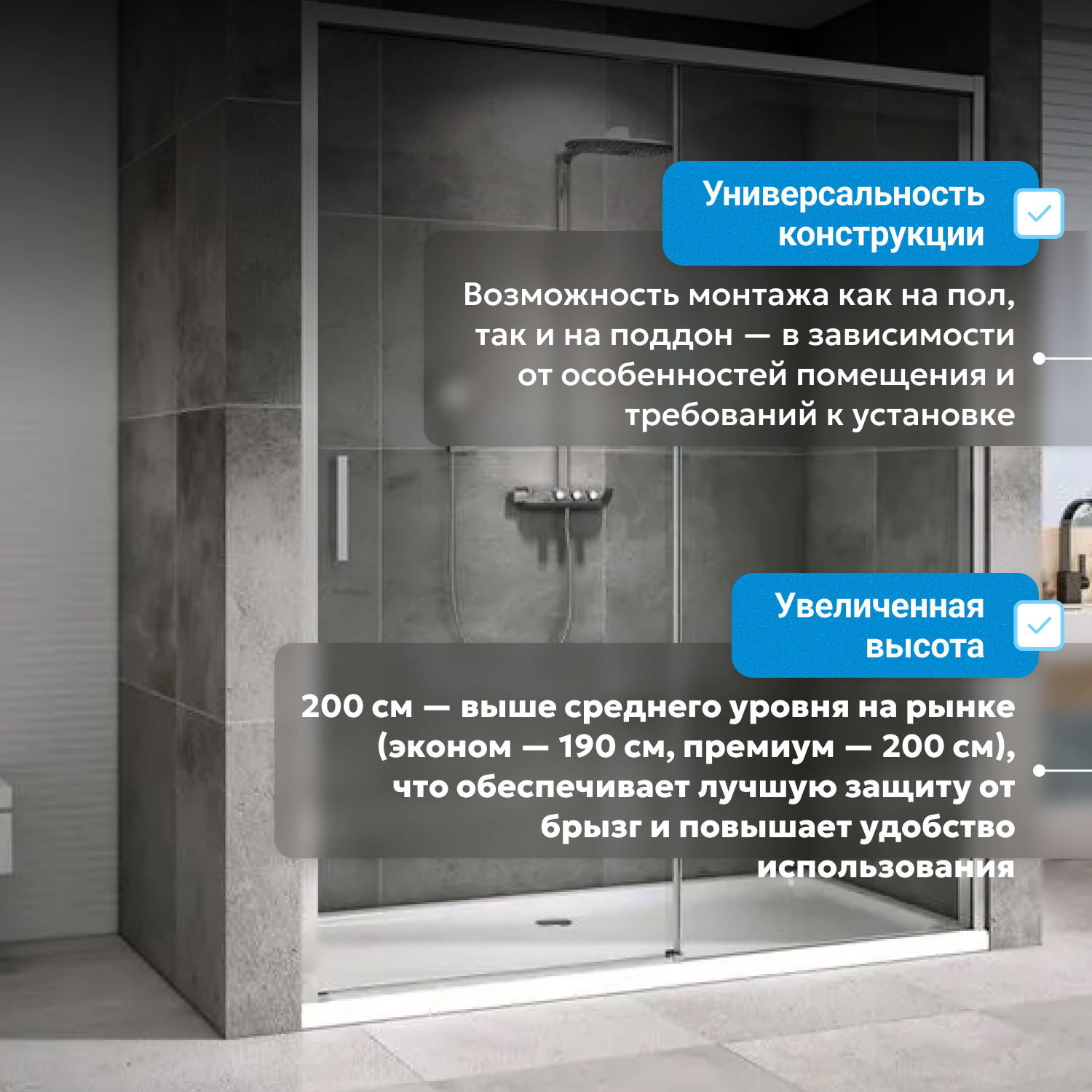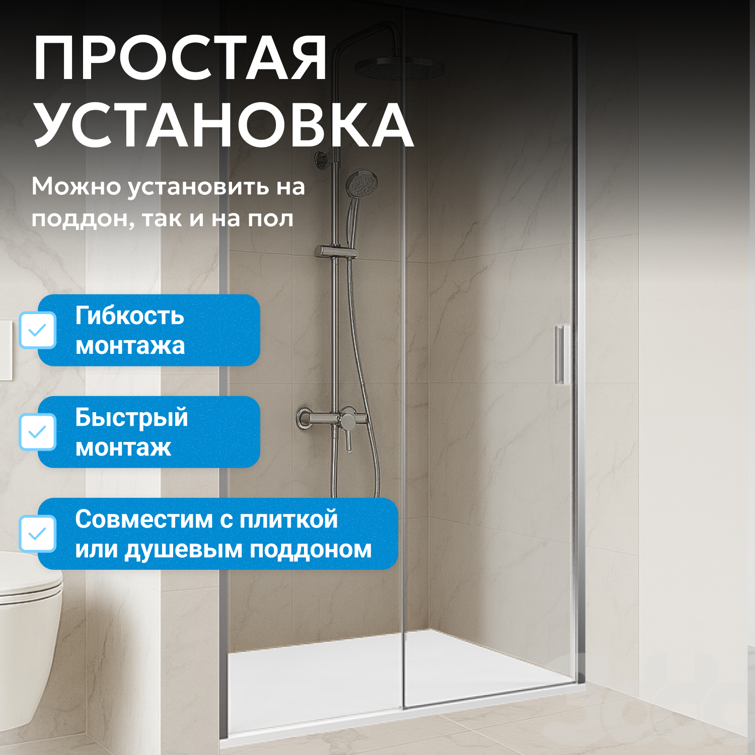 - возможна установка на пол и на поддон, поддон приобретается отдельно