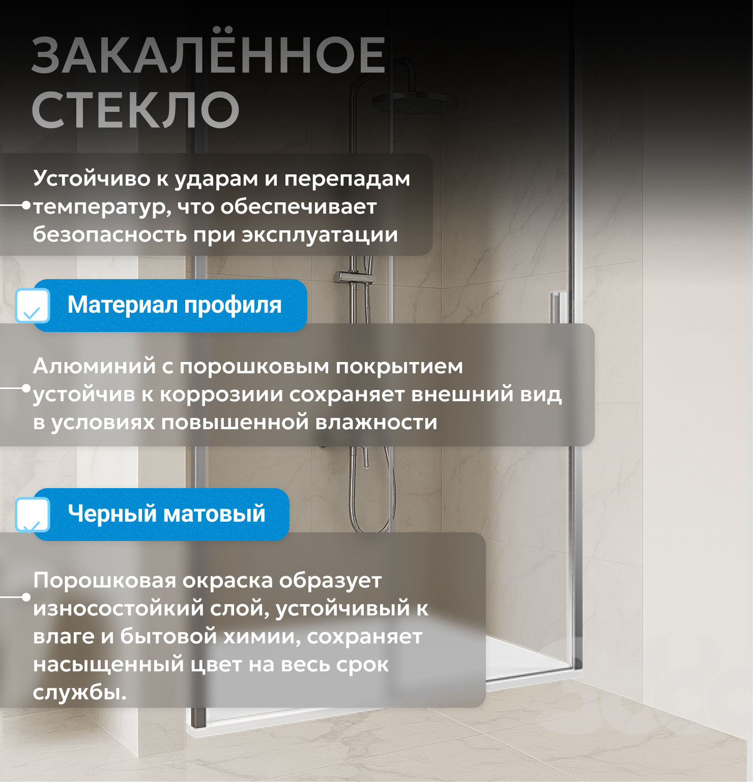 - закаленное, прозрачное стекло 8 мм