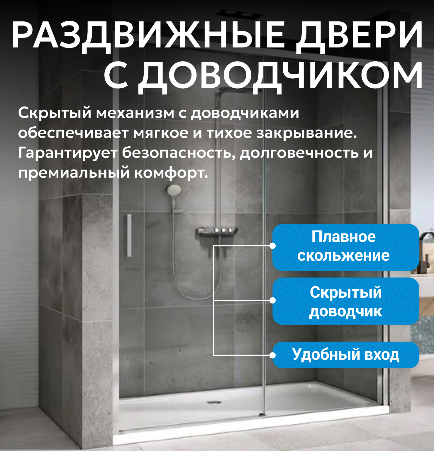 - Soft-close доводчики позаботятся о плавной и бесшумной фиксации двери в крайних положениях