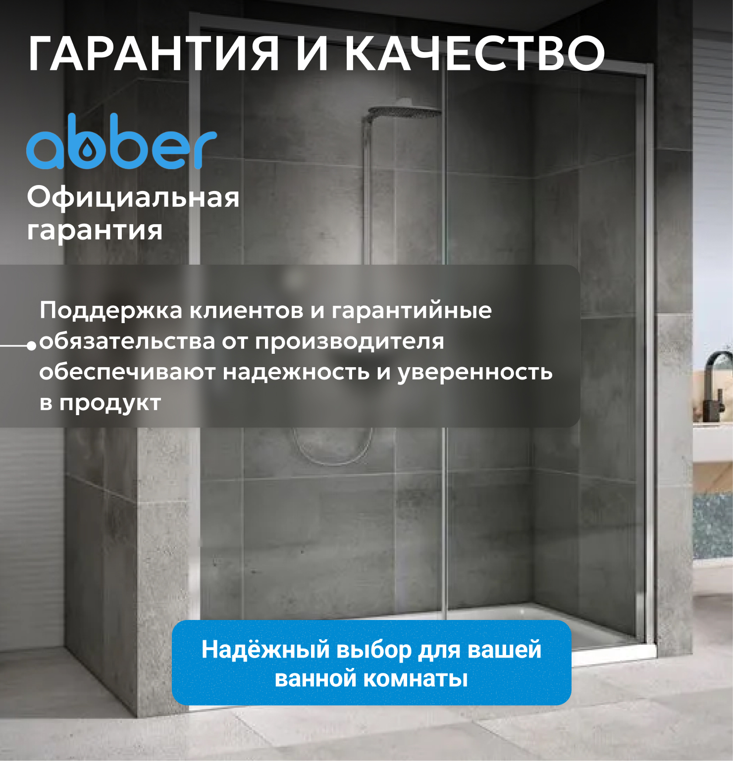 Душевые двери ABBER изготавливаются из анодированного алюминиевого профиля и закалённого, ударопрочного стекла. Также стеклянные душевые двери обладают рядом преимуществ: они легко моются, надежны и долговечны в эксплуатации.
