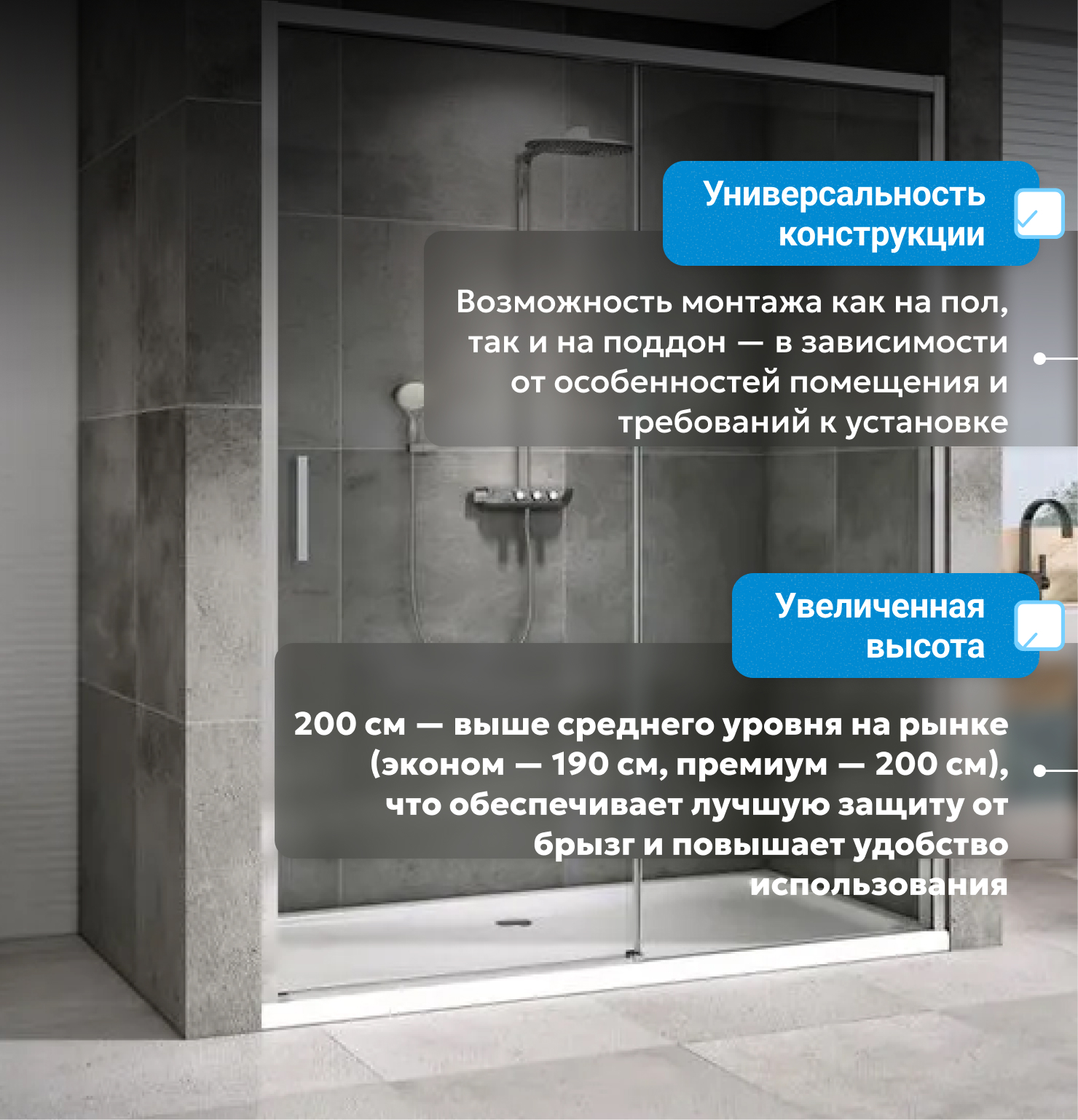 - возможна установка на пол и на поддон, поддон приобретается отдельно