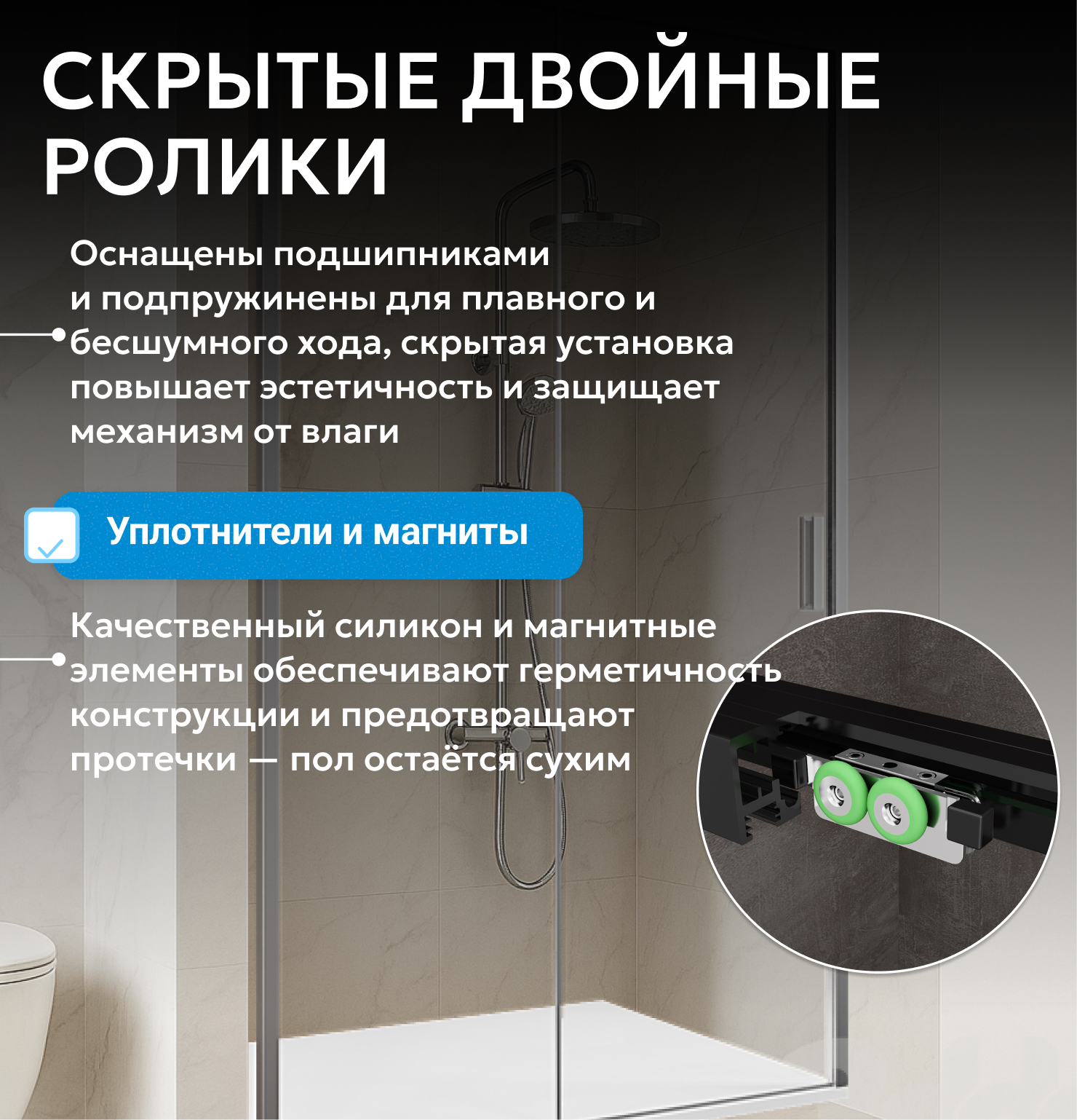 ширина пристенного профиля 60 мм, Soft-close доводчики позаботятся о плавной и бесшумной фиксации двери в крайних положениях