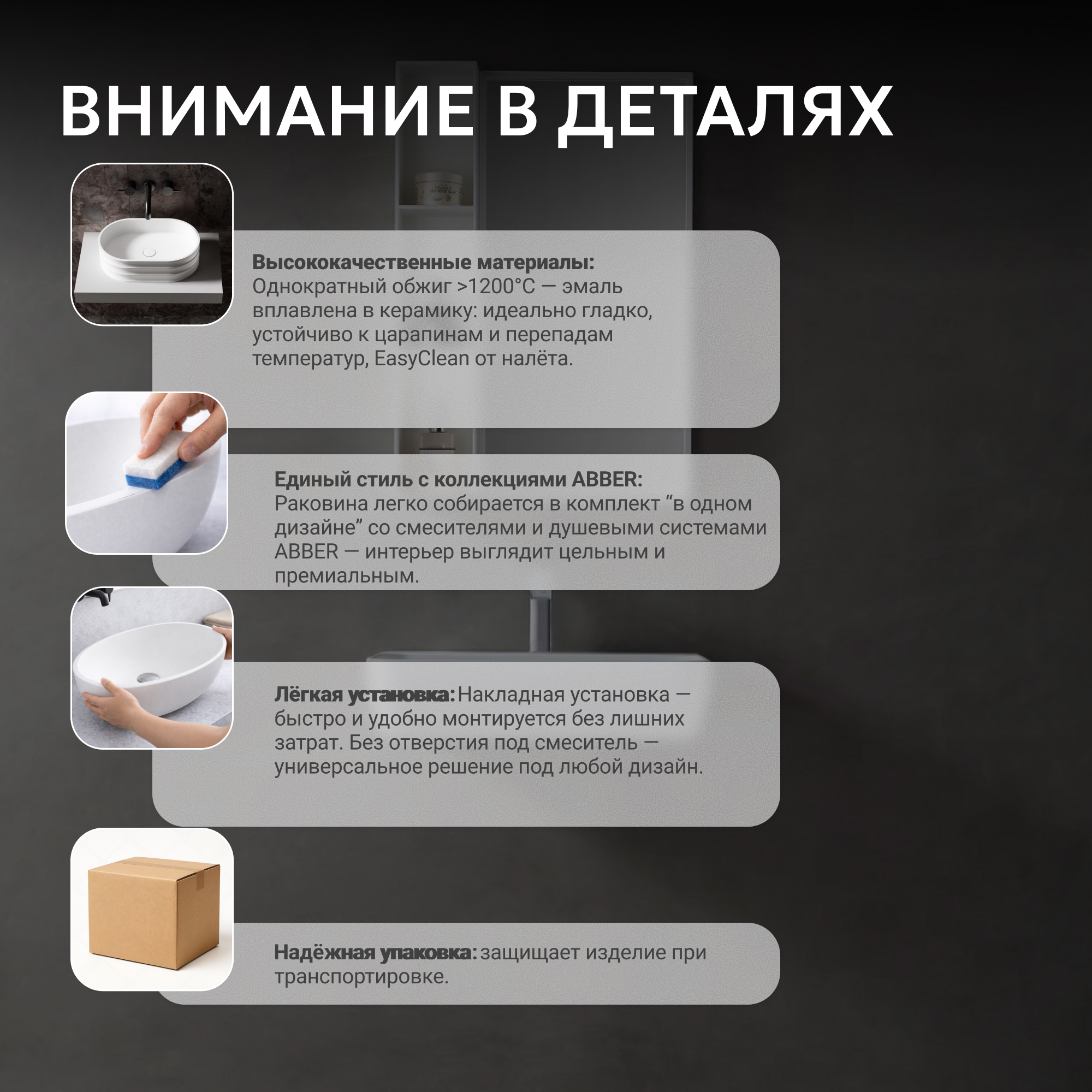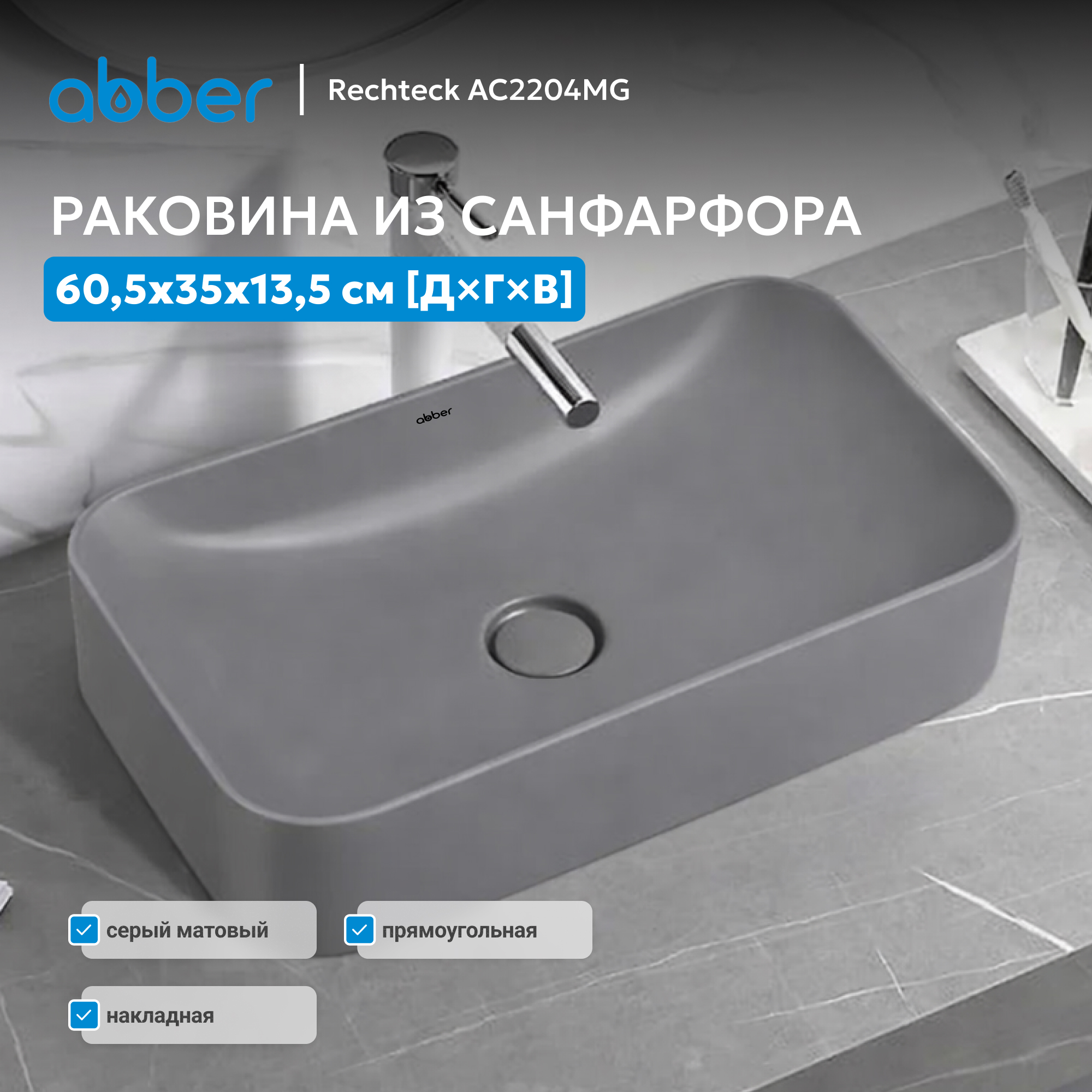 Раковина накладная ABBER Rechteck AC2204MG серая матовая