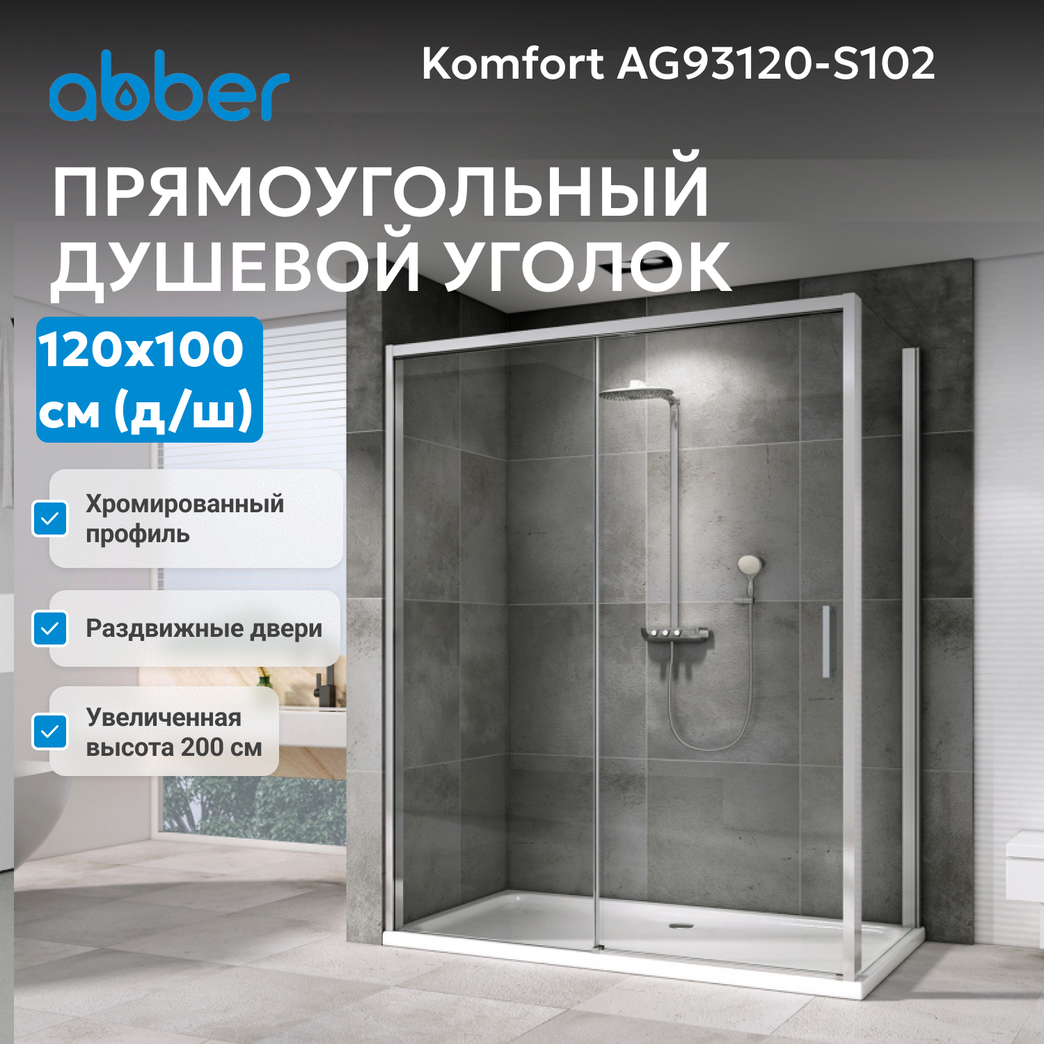 Душевой уголок ABBER Komfort AG93120-S102 сочетает прозрачное 8-миллиметровое закалённое стекло и алюминиевый хромированный профиль. Прямоугольная форма конструкции размером 120×100×200 см обеспечивает эффективное использование пространства. Раздвижная дверь с механизмом soft-close работает плавно и бесшумно, вход шириной 477 мм удобен для ежедневного пользования.