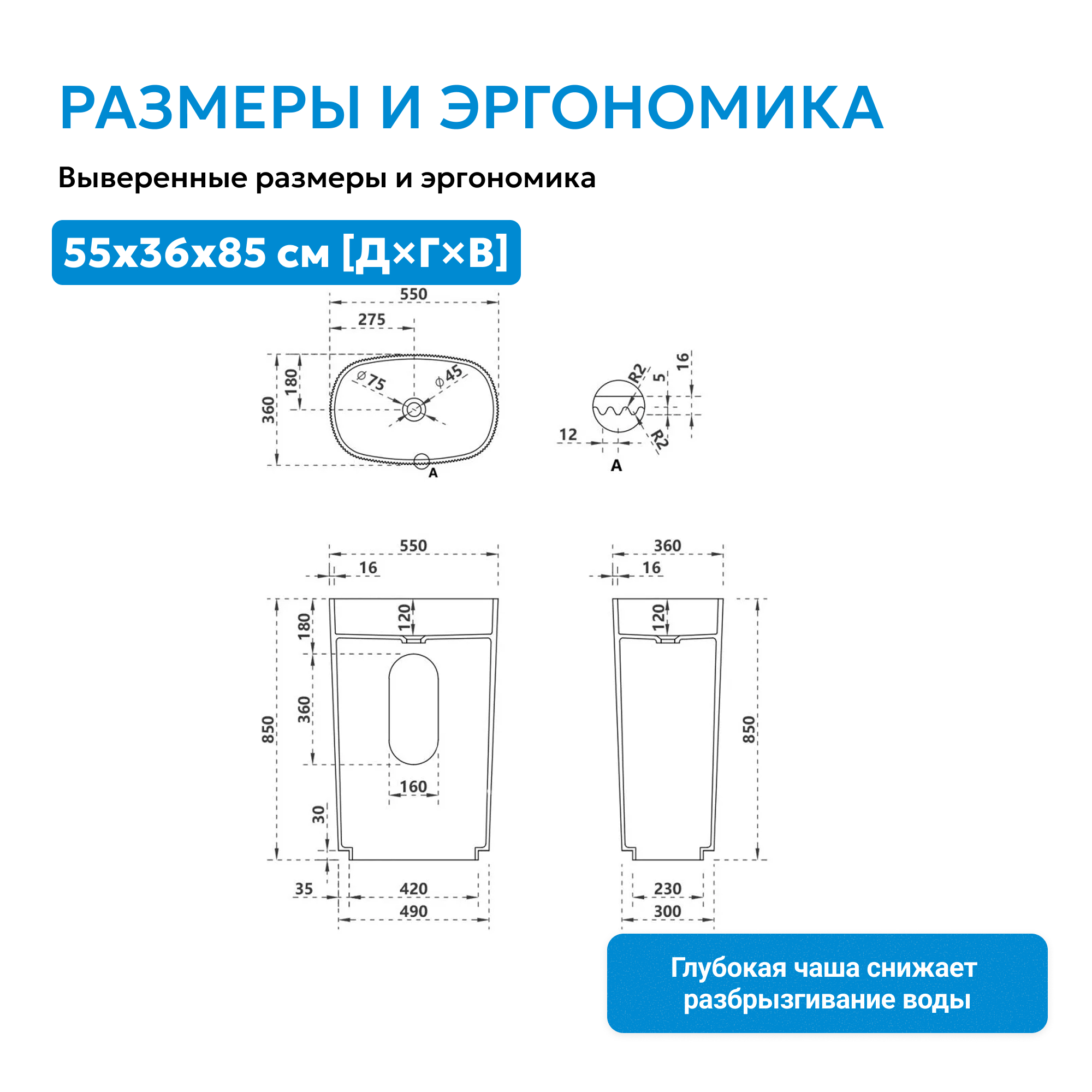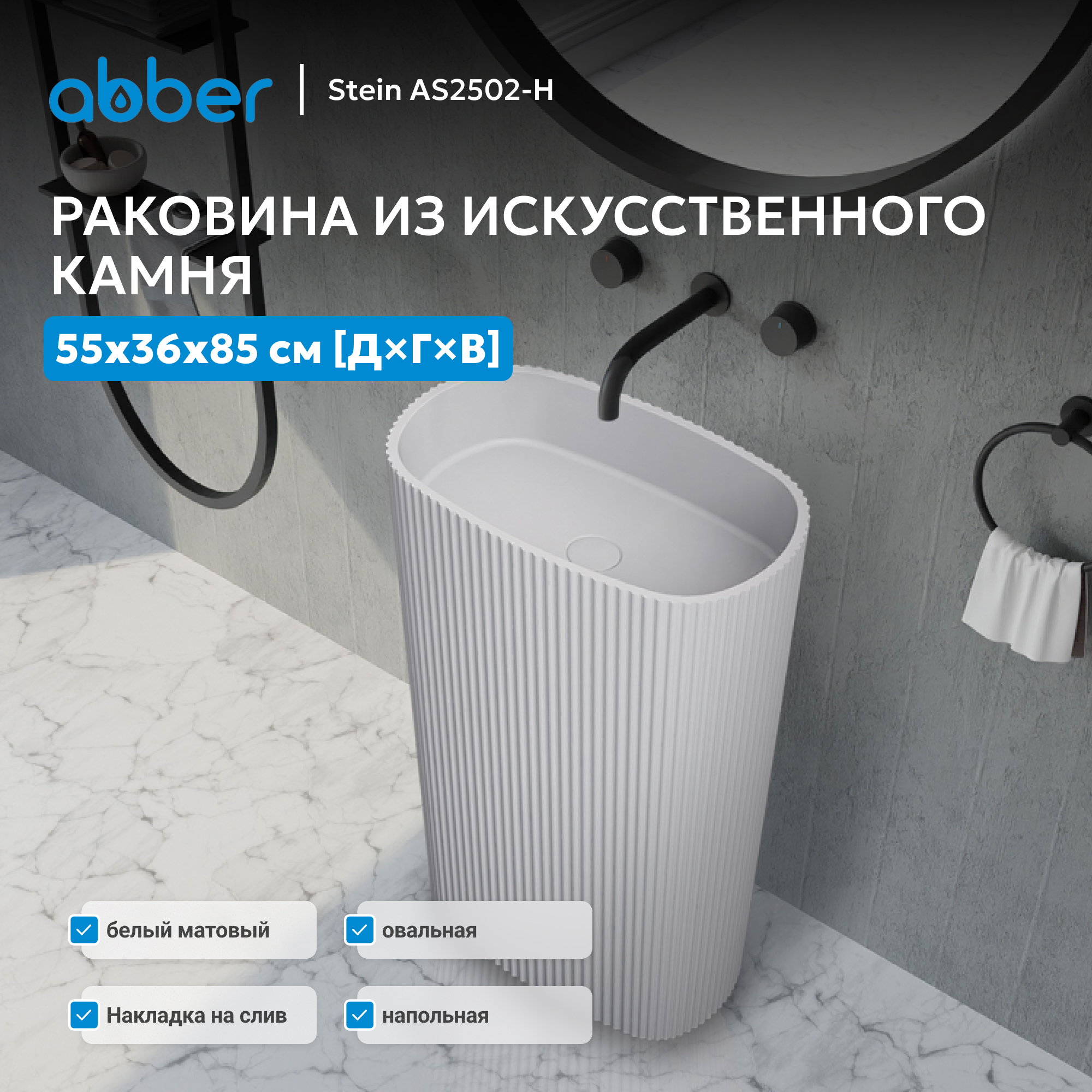 Раковина отдельностоящая ABBER Stein AS2502-H белая матовая