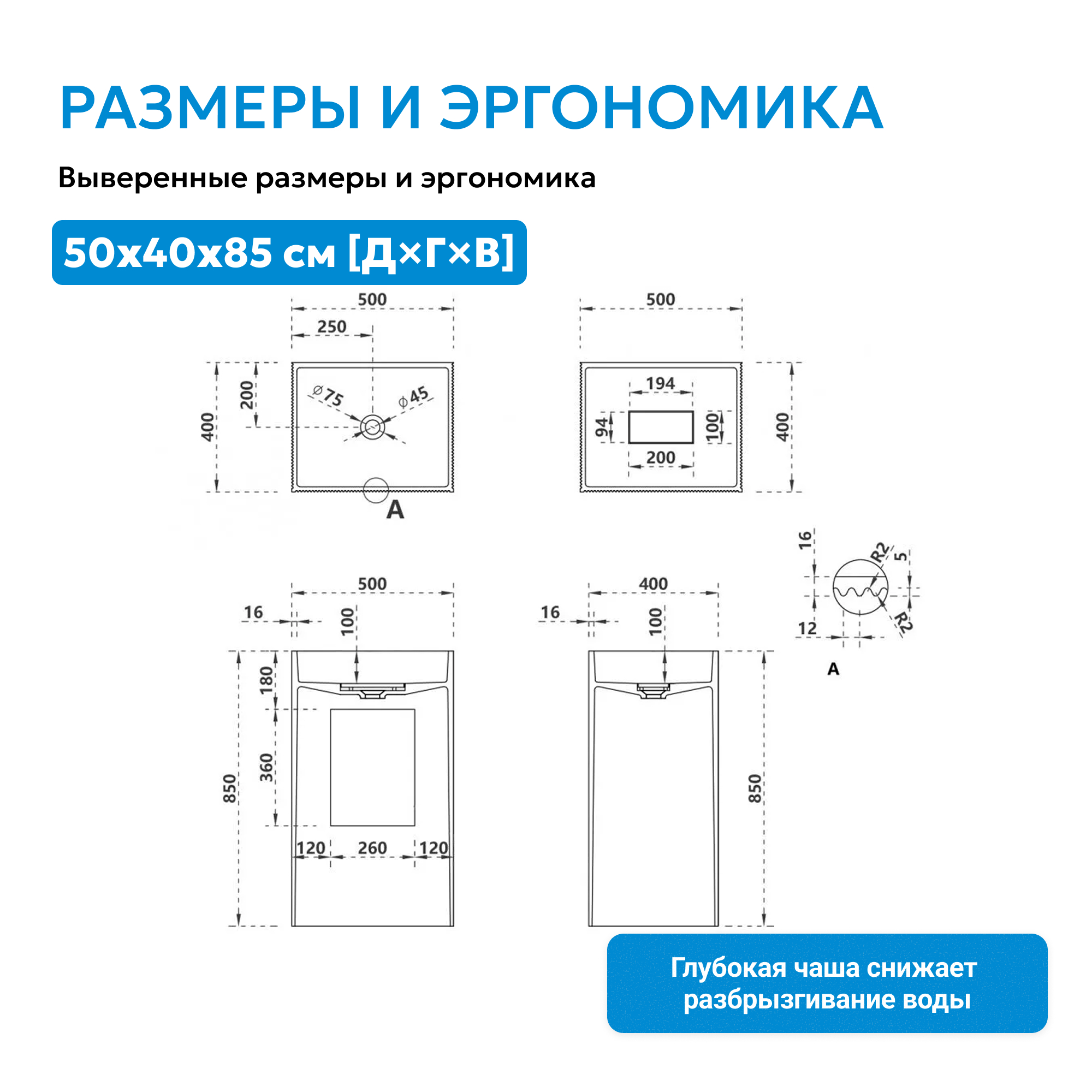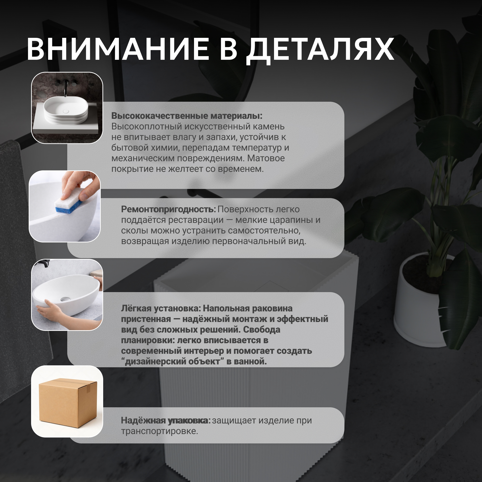 Раковина отдельностоящая ABBER Stein AS2503-H белая матовая