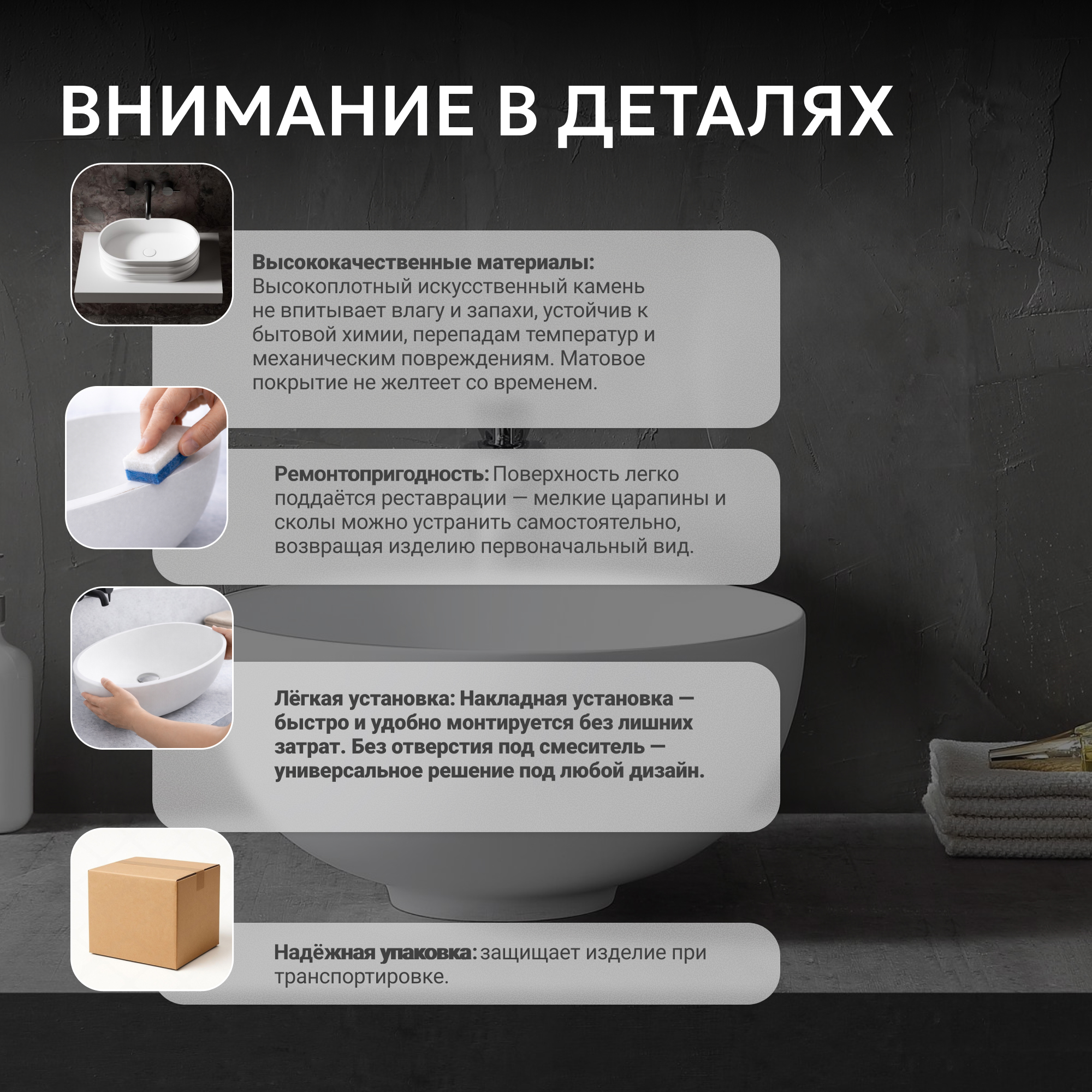 Раковина накладная ABBER Stein AS2617 белая матовая