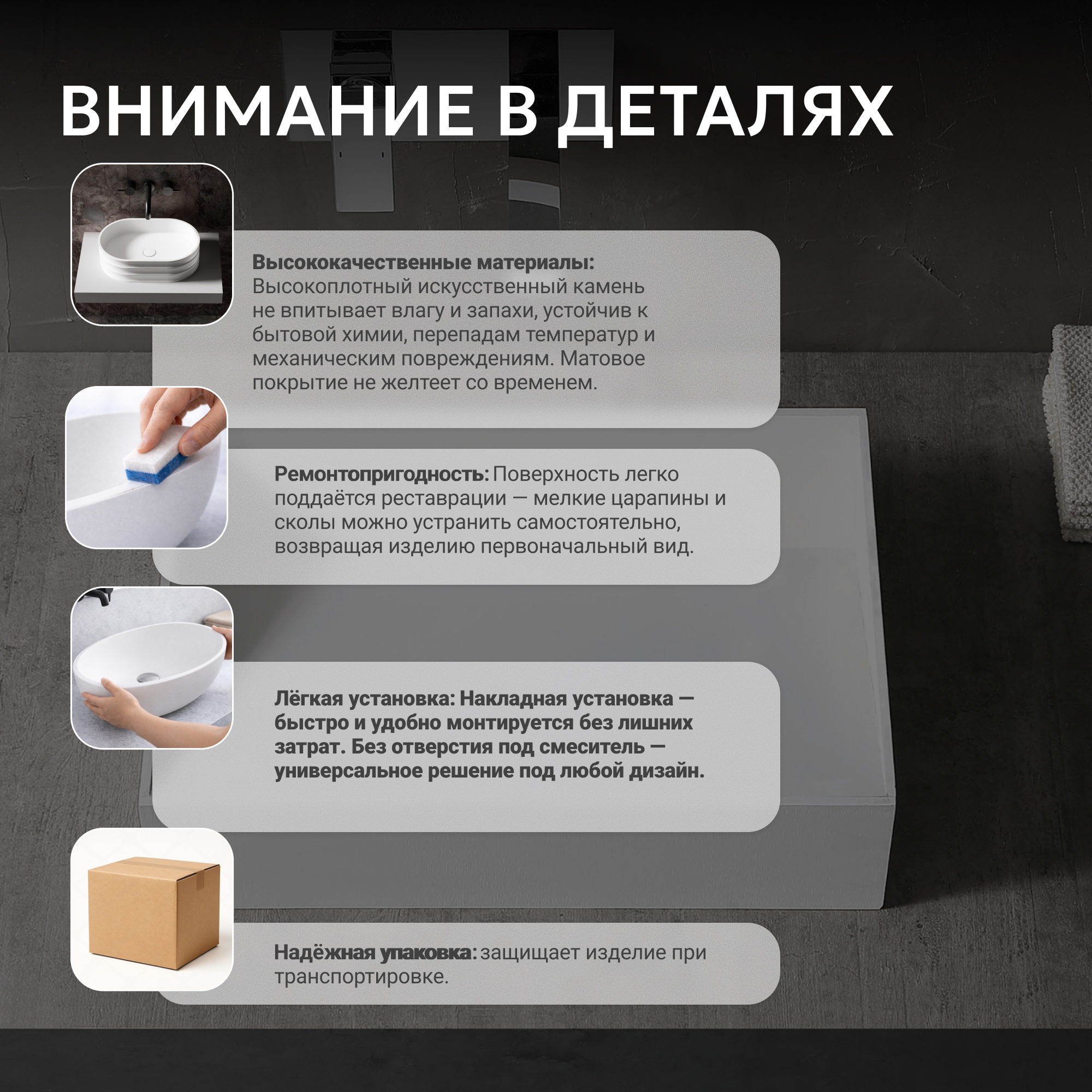 Раковина накладная ABBER Stein AS2623 белая матовая