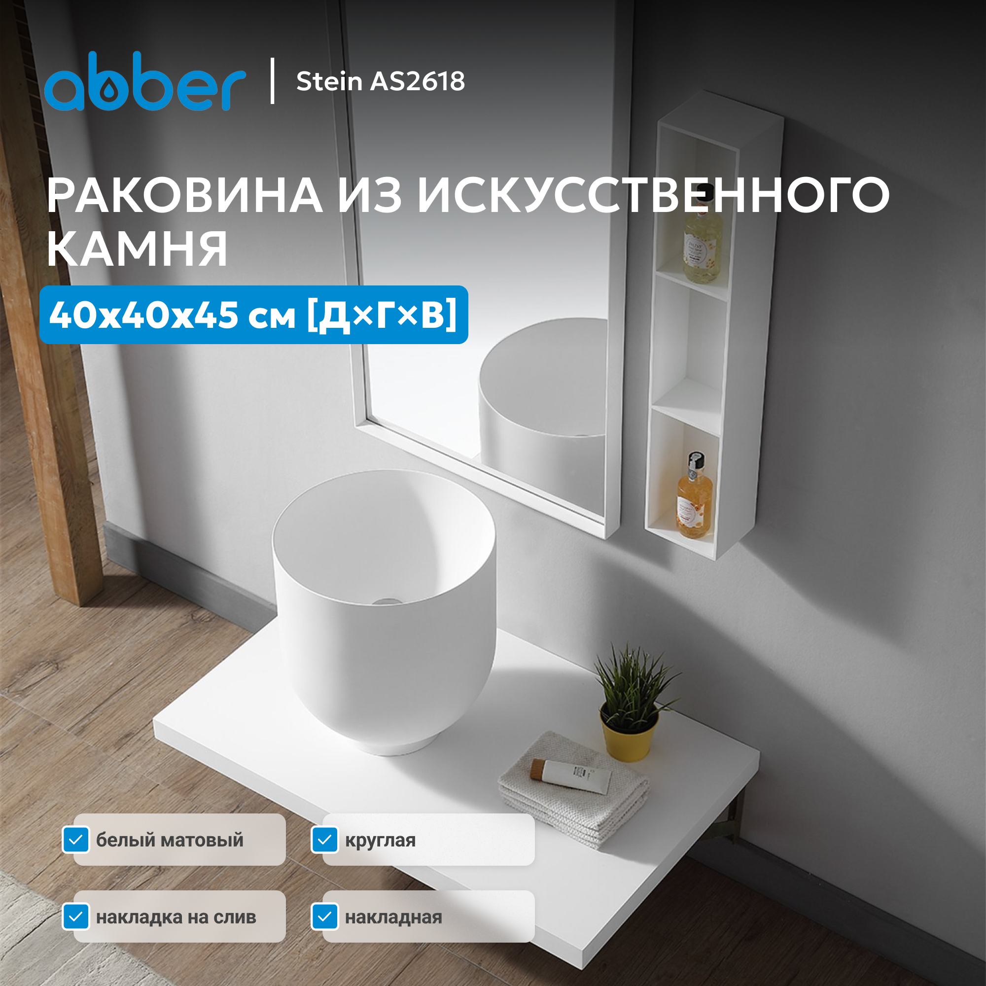 Раковина накладная ABBER Stein AS2618 белая матовая