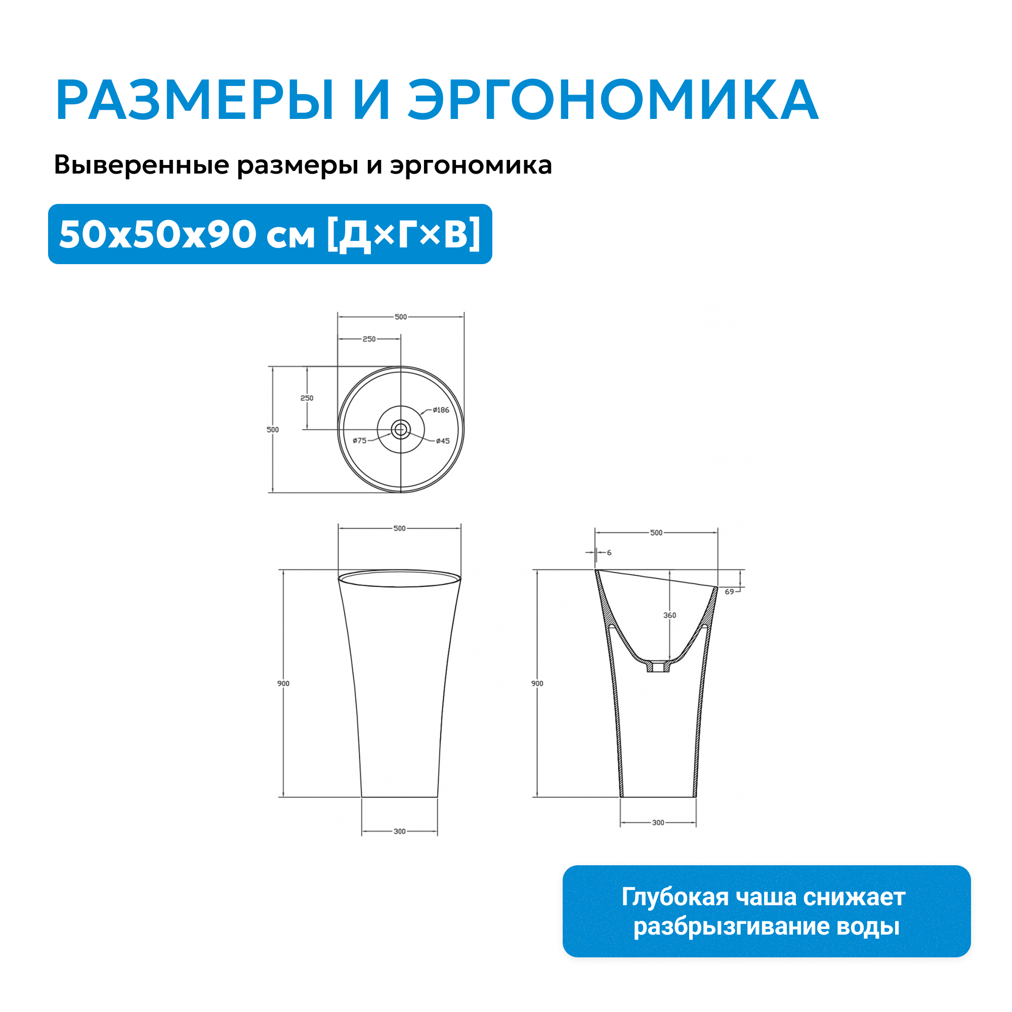 Раковина отдельностоящая ABBER Stein AS2509 белая матовая