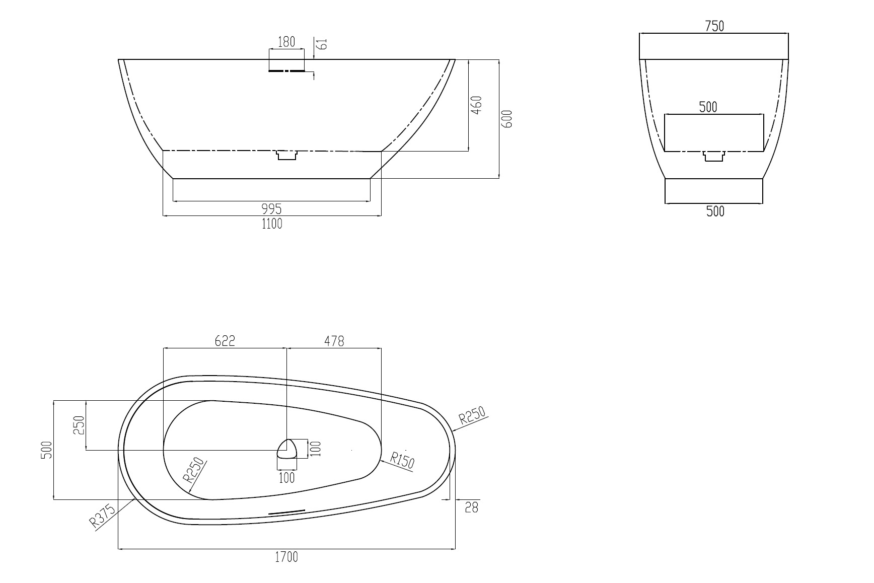 Ванная акриловая и каменная продукция бренда Abber отличается продуманной эргономикой. Модель Dortmund AM9911BW предназначена для отдельностоящей установки и рассчитана на одного человека. Размеры — длина 170 см, ширина 75 см и высота 60 см — соответствуют стандартные размеры ванной акриловой, что упрощает монтаж и размещение в помещениях разной площади.