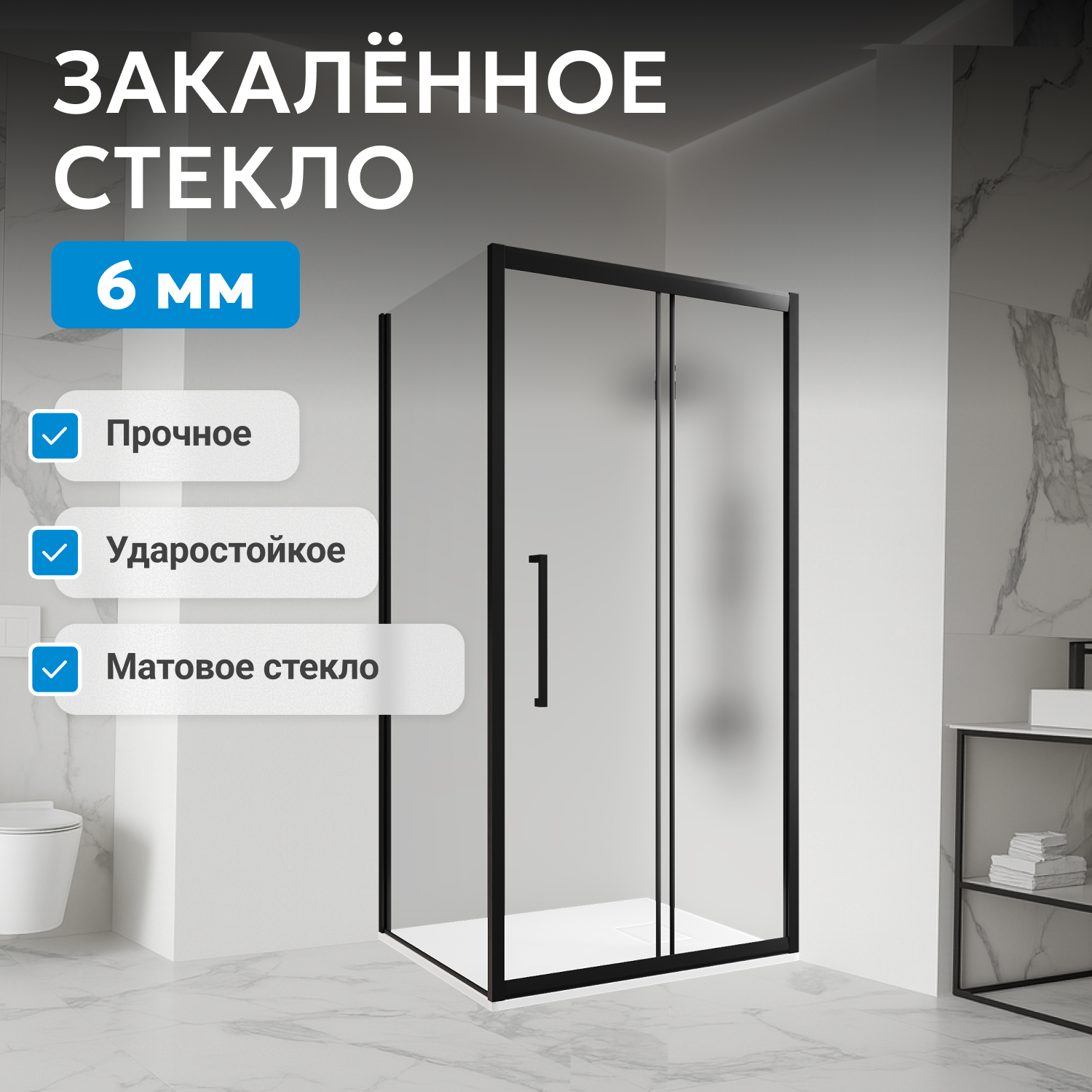 - закаленное, матовое стекло 6 мм