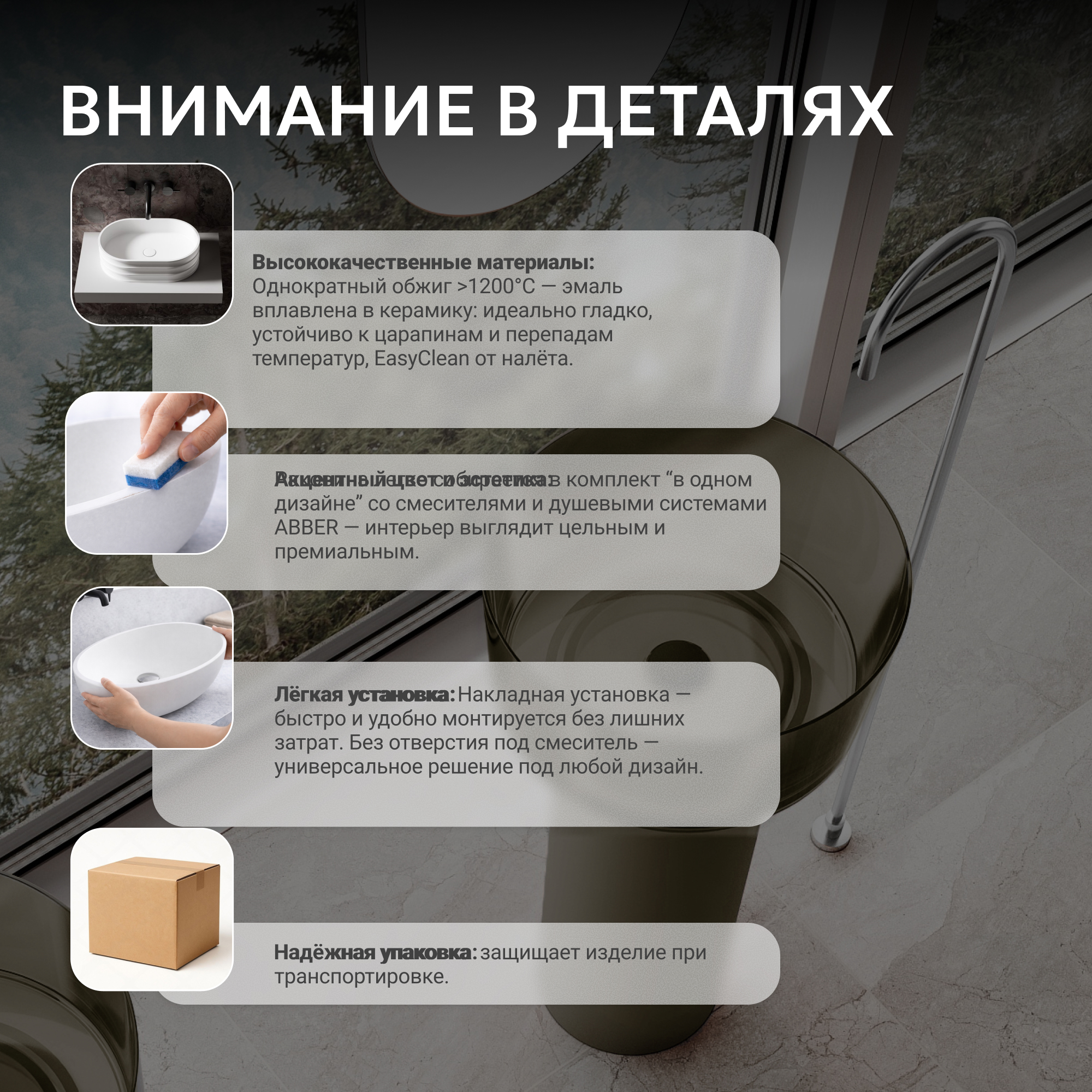 Раковина отдельностоящая прозрачная ABBER Kristall AT2702Vesuvian оливковая