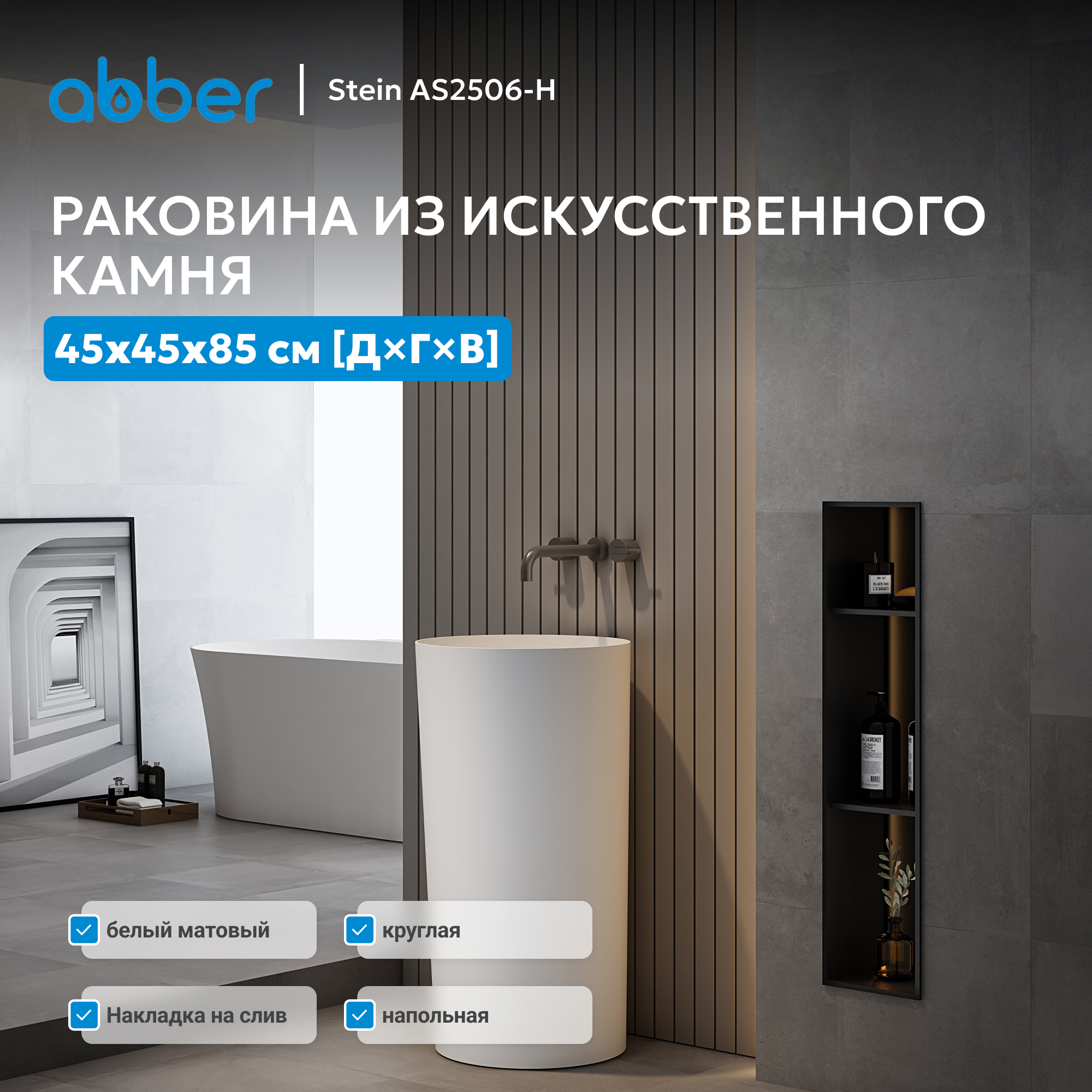 Раковина отдельностоящая ABBER Stein AS2506-H белая матовая
