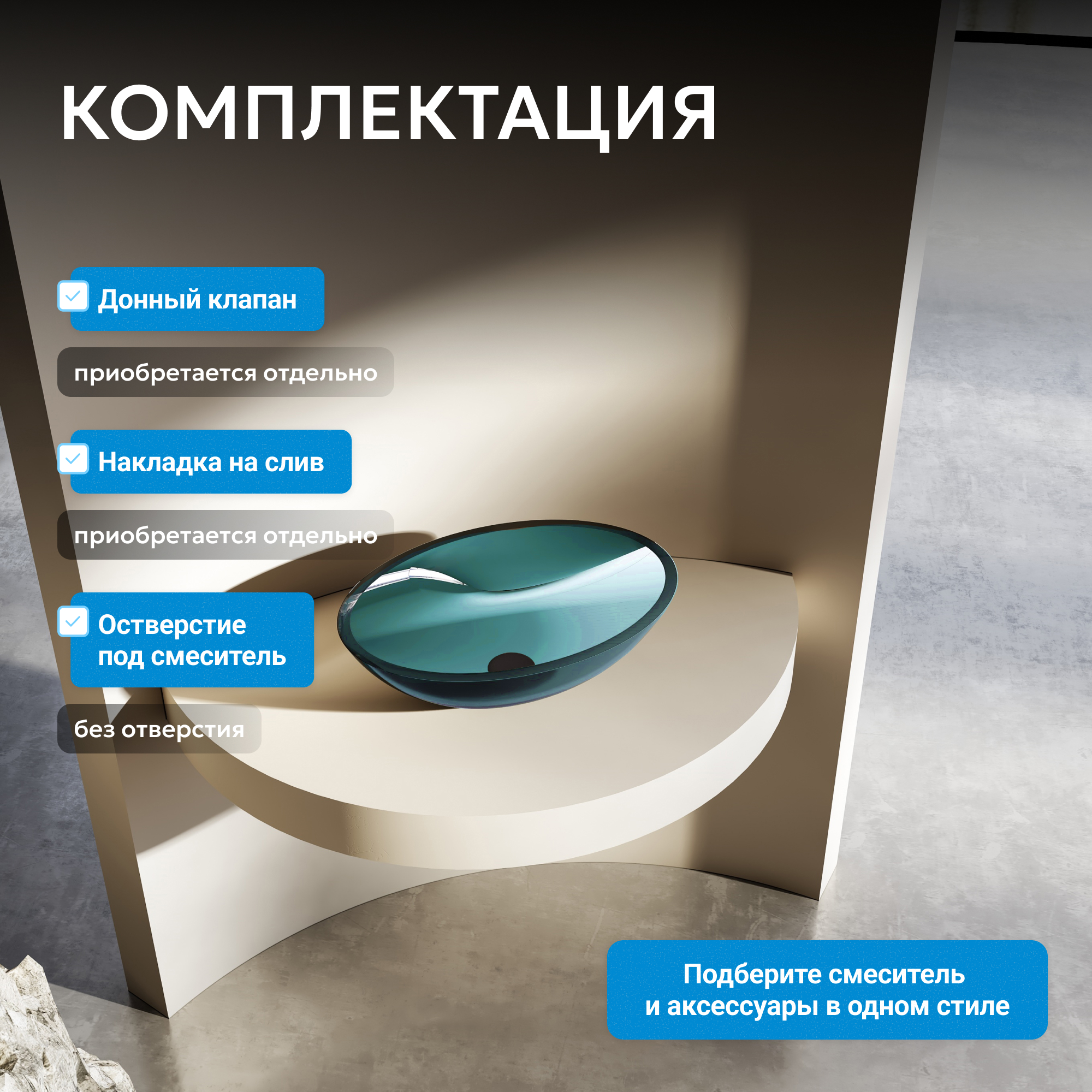 Раковина накладная прозрачная ABBER Kristall AT2802Aquamarin бирюзовая