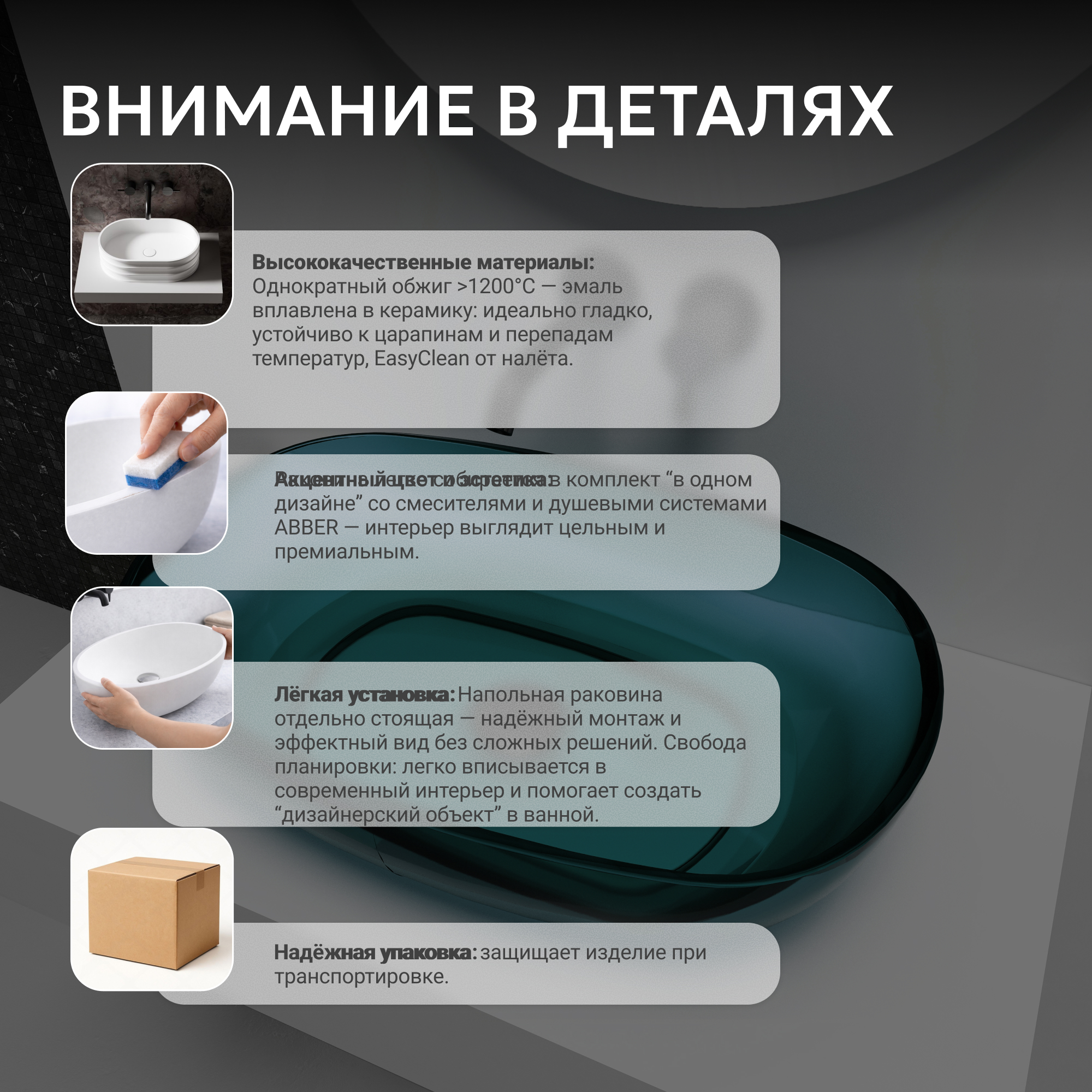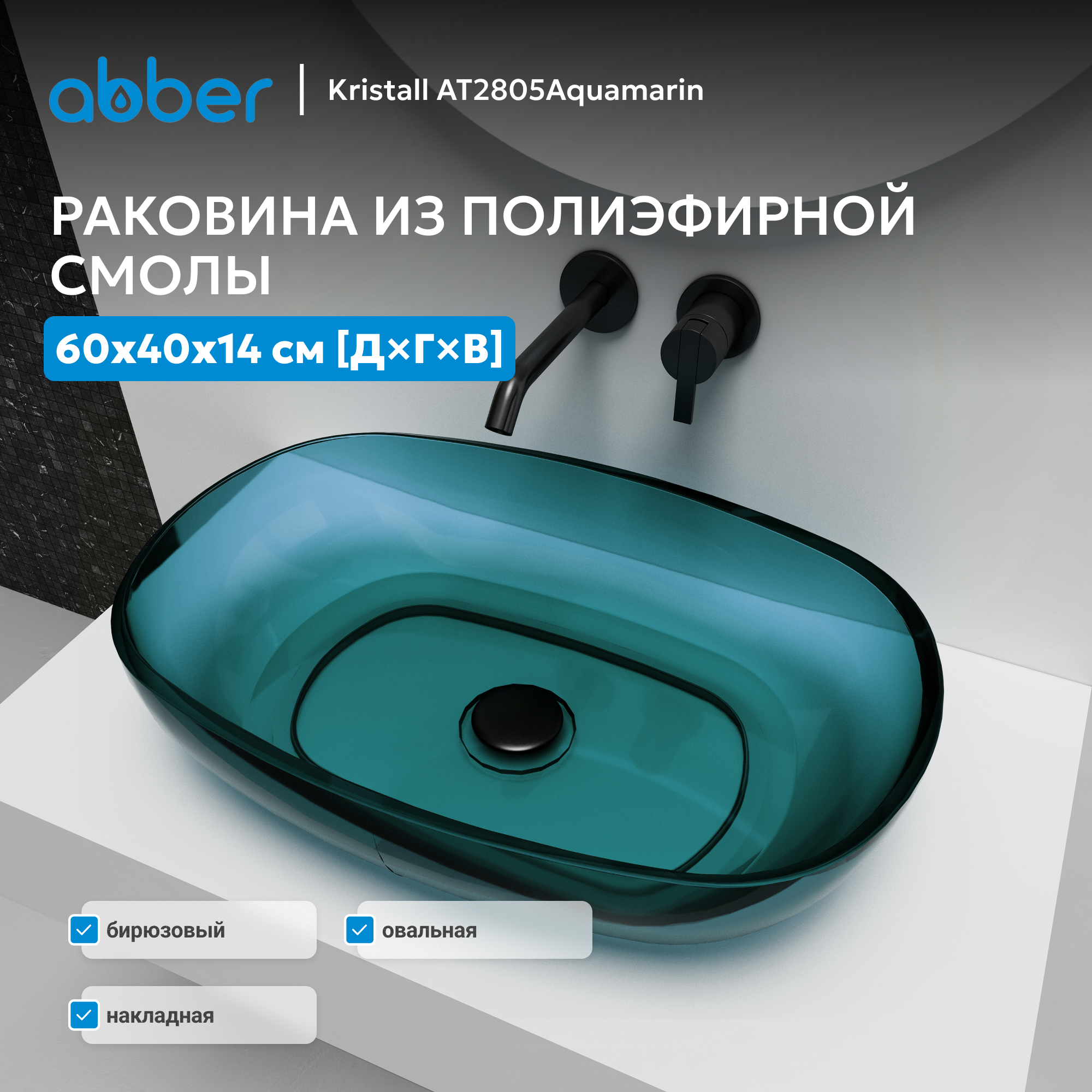Раковина накладная прозрачная ABBER Kristall AT2805Aquamarin бирюзовая