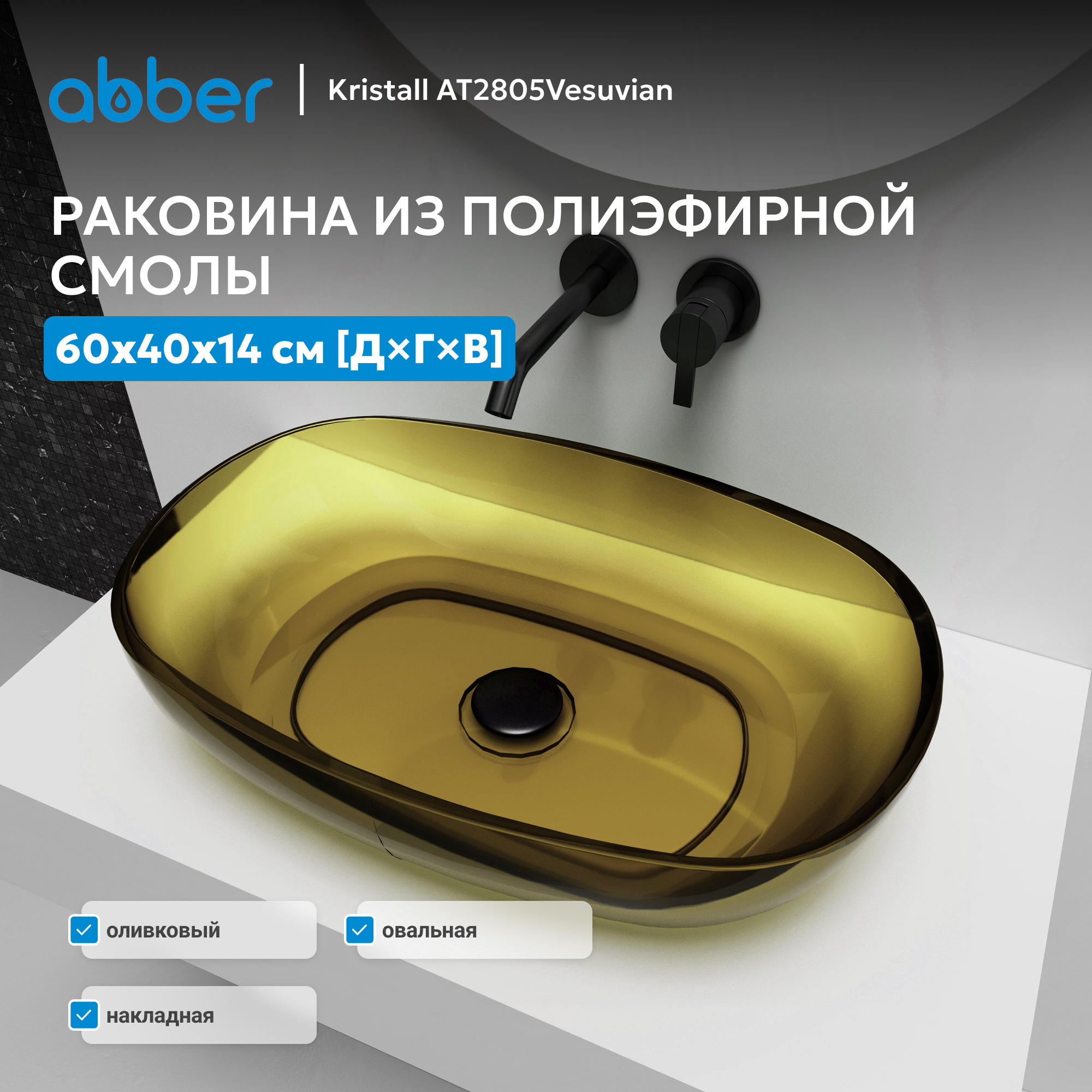Раковина накладная прозрачная ABBER Kristall AT2805Vesuvian оливковая