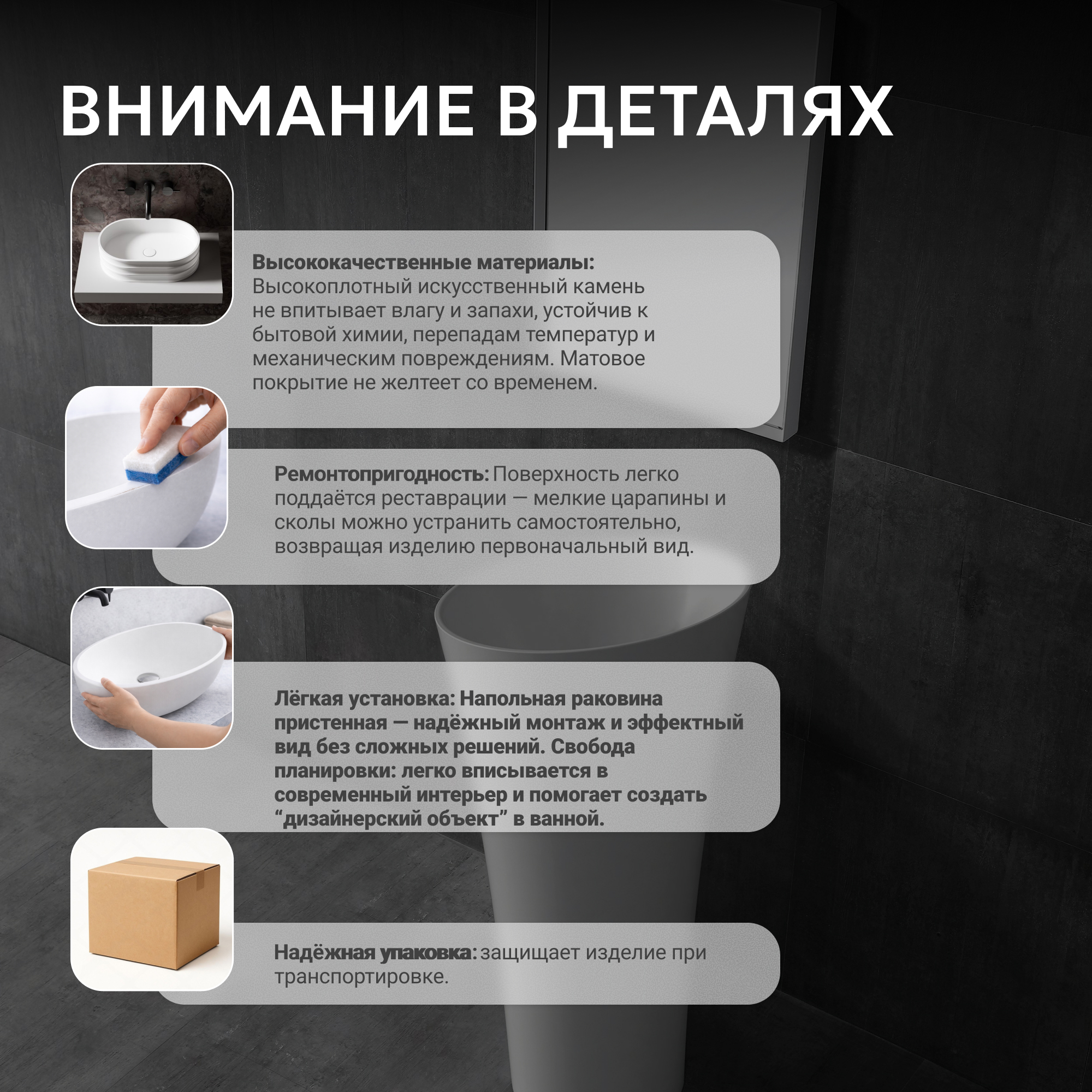 Раковина отдельностоящая ABBER Stein AS2509-H белая матовая