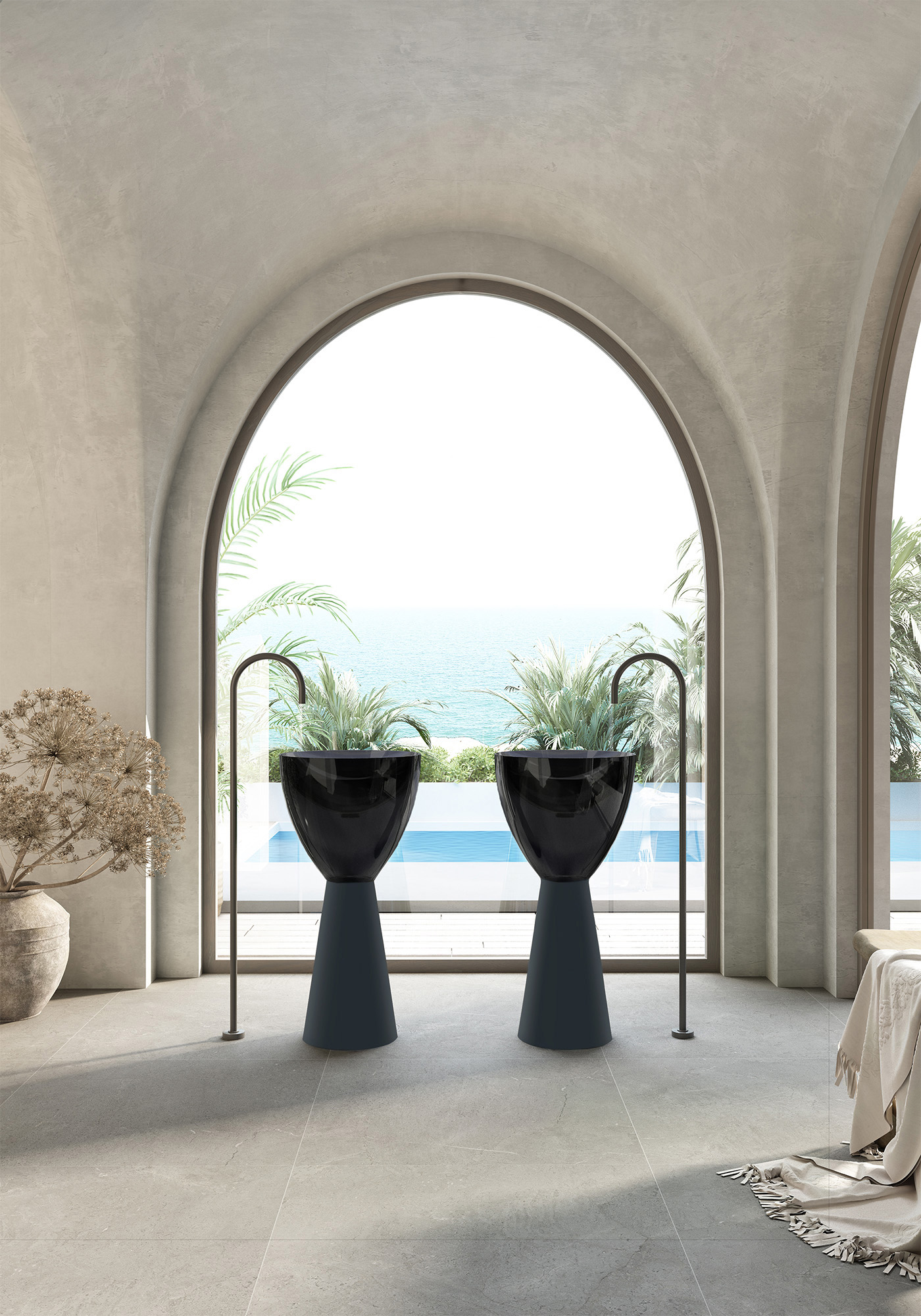 Раковина отдельностоящая прозрачная ABBER Kristall AT2703Onyx-Black черный/черный матовый