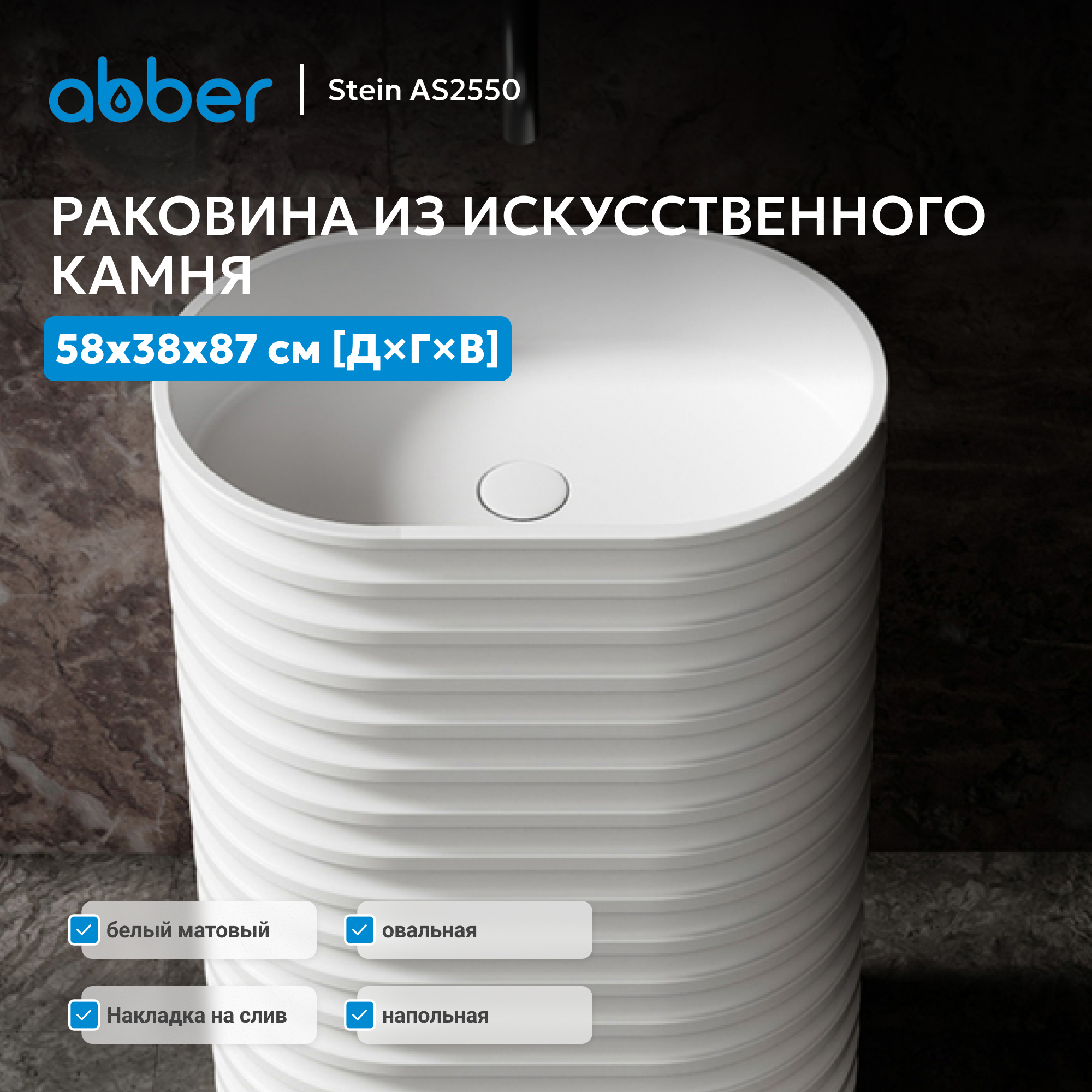 Раковина отдельностоящая ABBER Stein AS2550 белая матовая