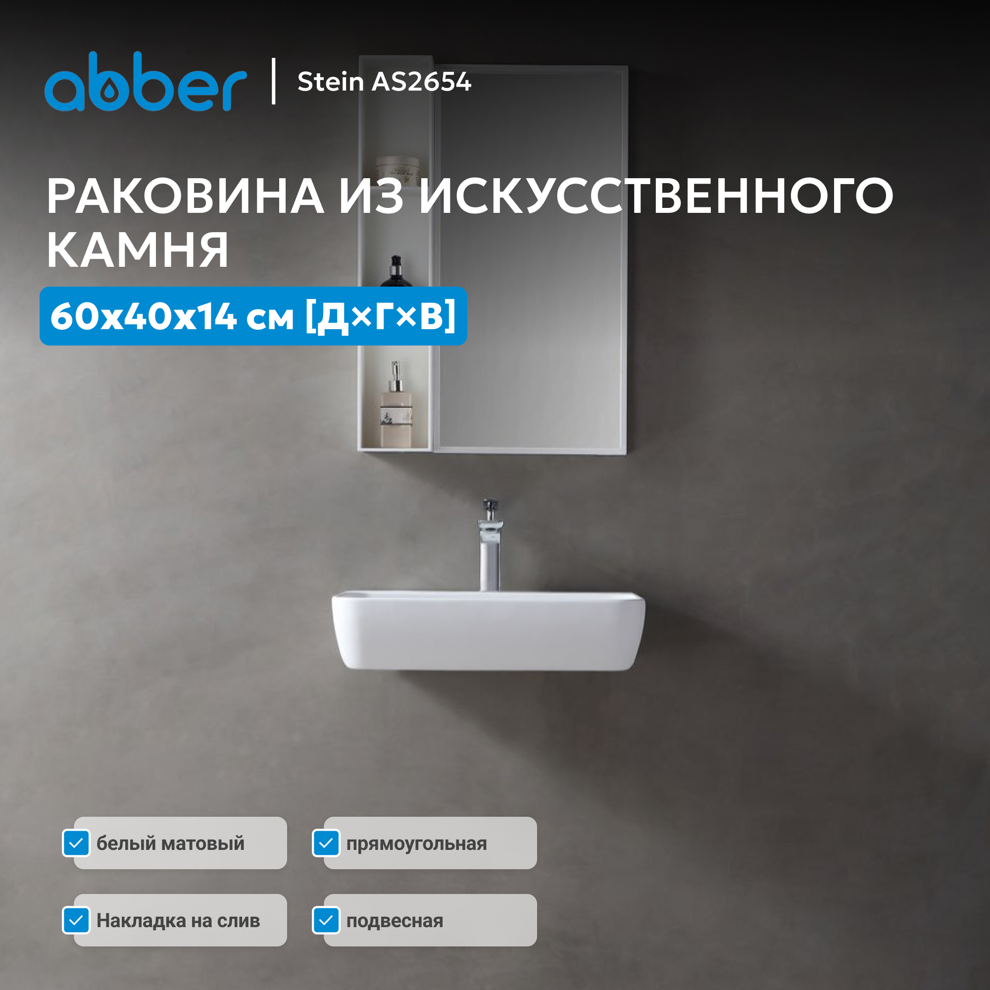 Раковина подвесная ABBER Stein AS2654 белая матовая