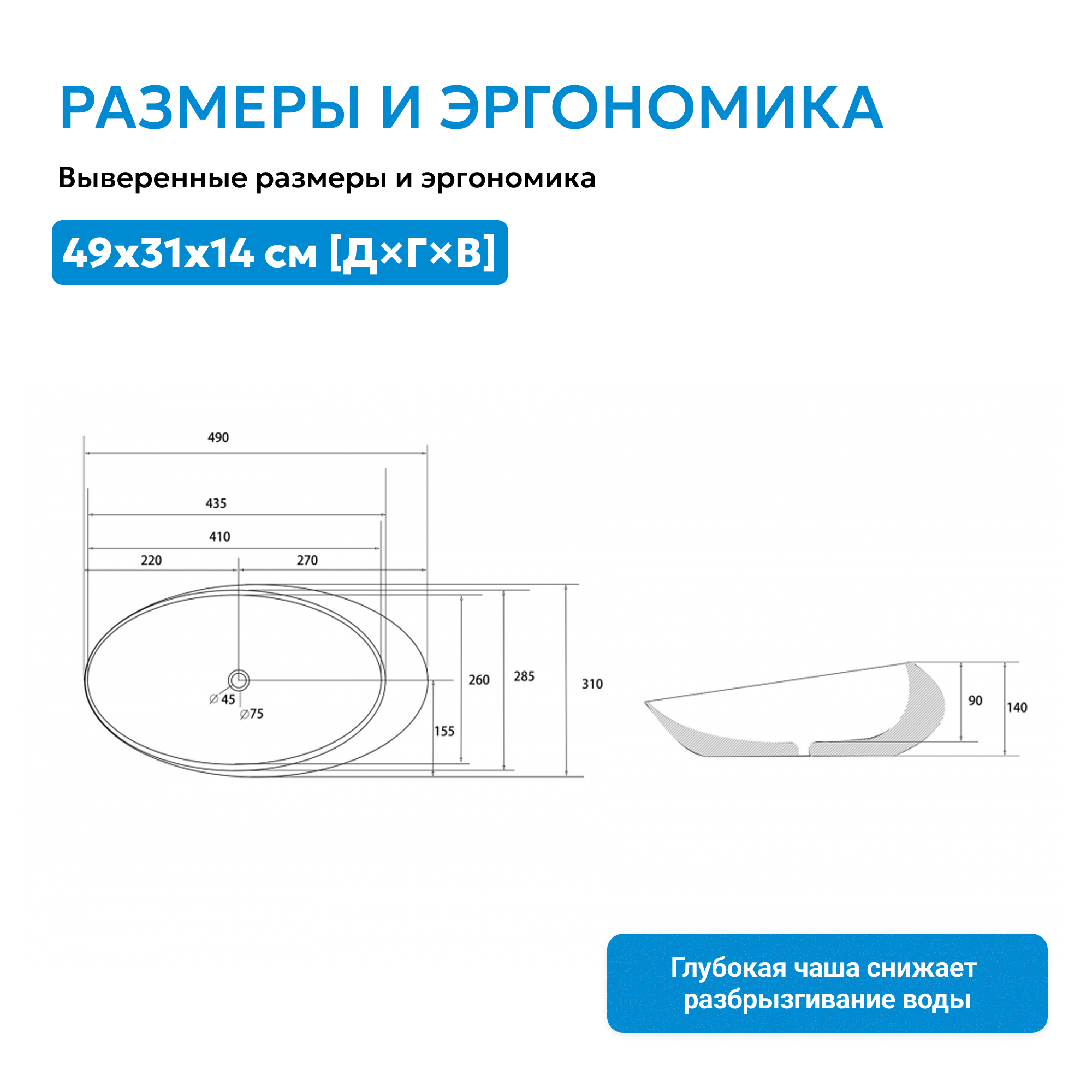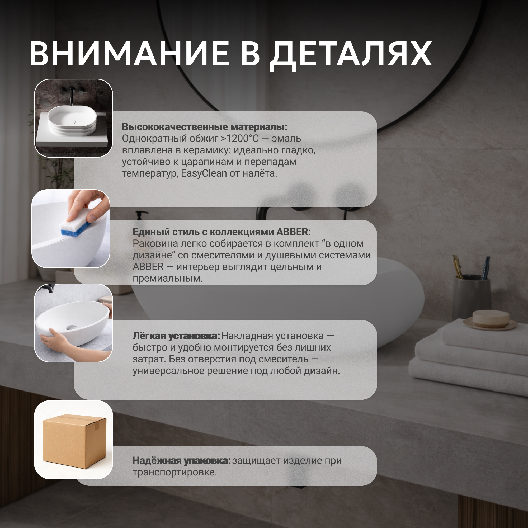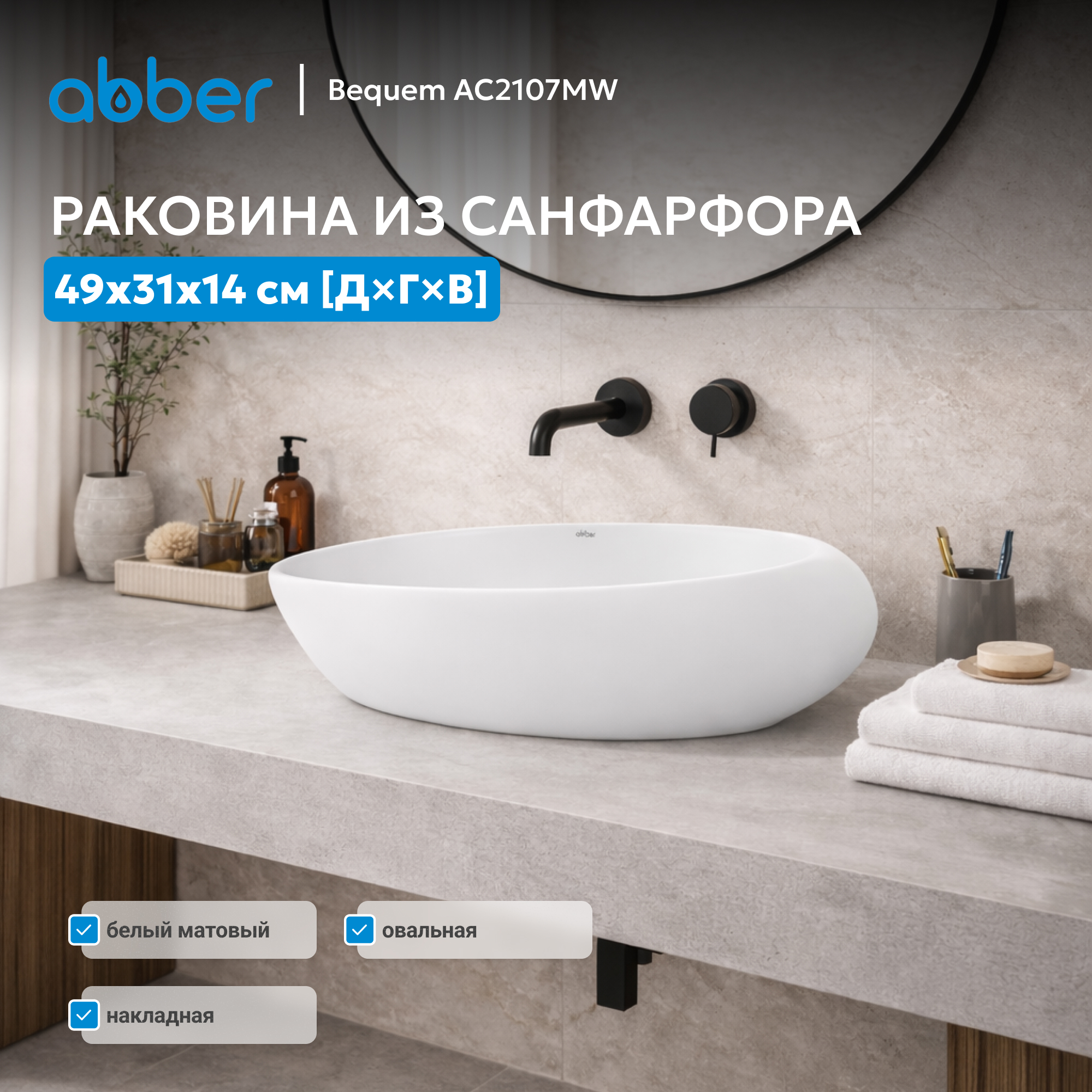 Раковина накладная ABBER Bequem AC2107MW белая матовая