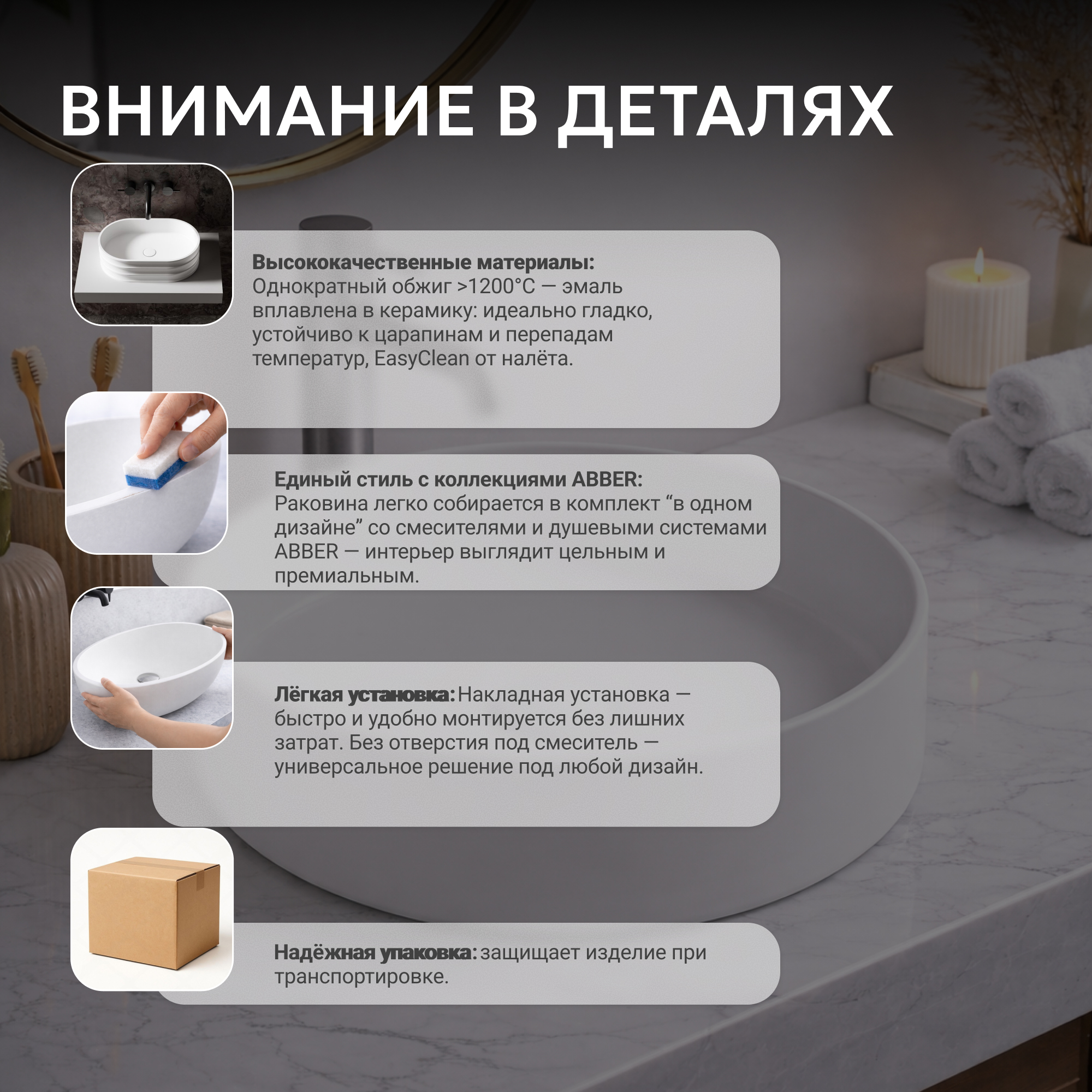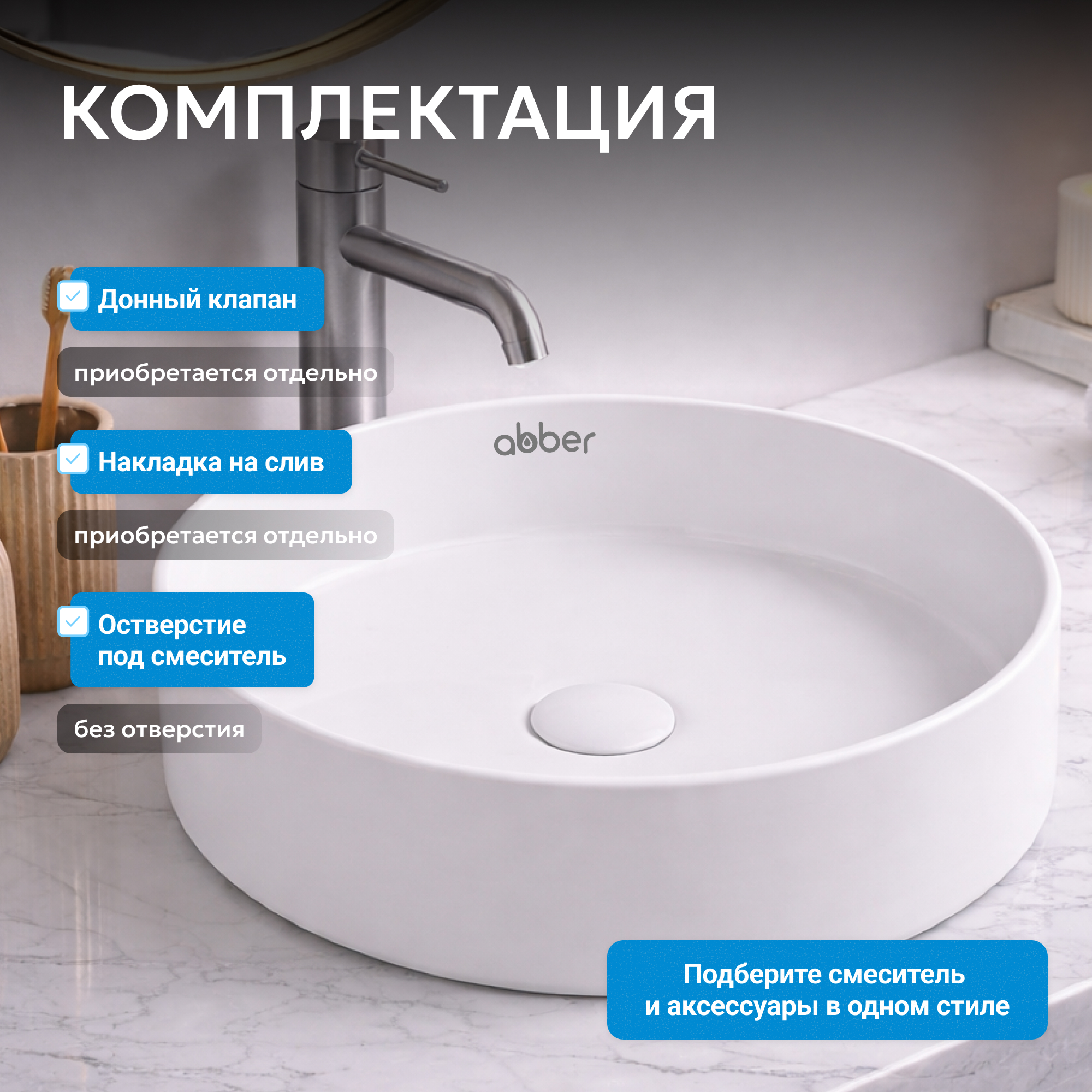 Раковина накладная ABBER Bequem AC2109MW белая матовая