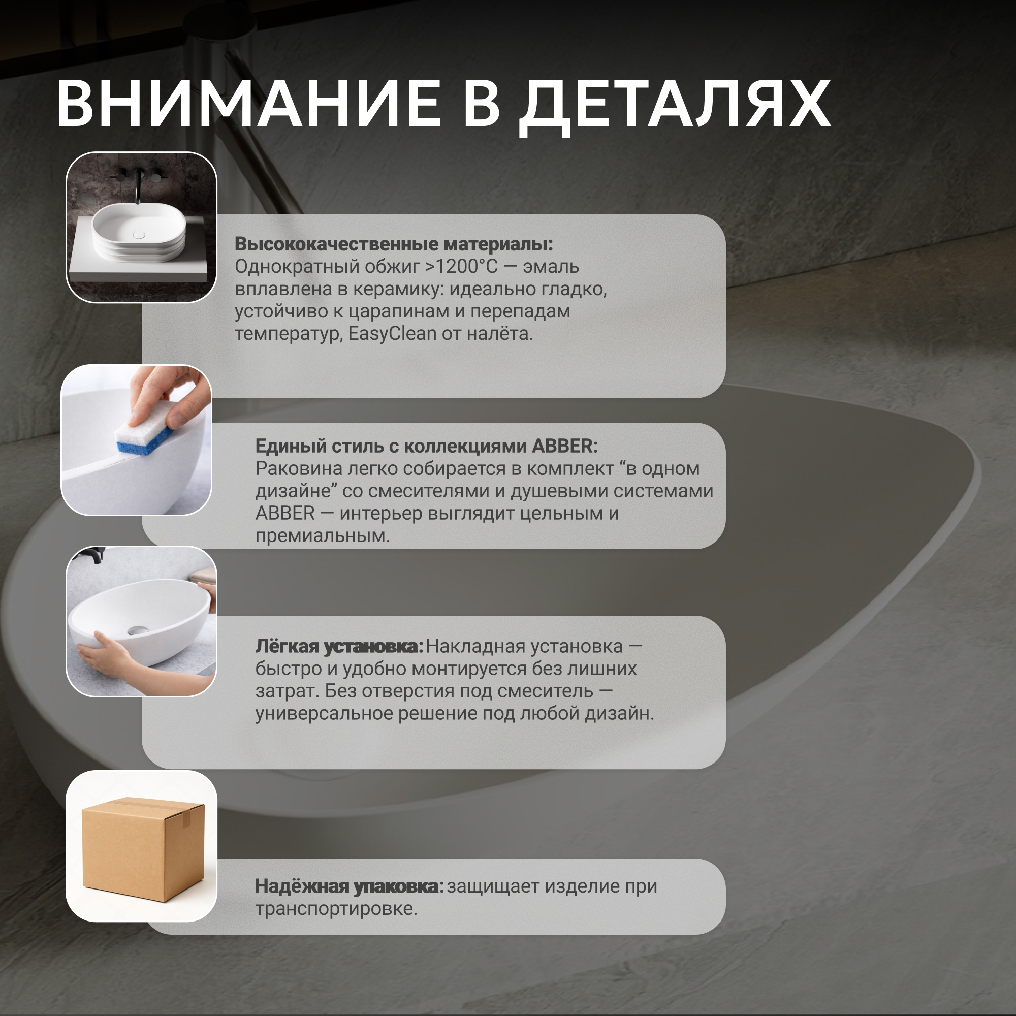 Раковина накладная ABBER Bequem AC2117MW белая матовая