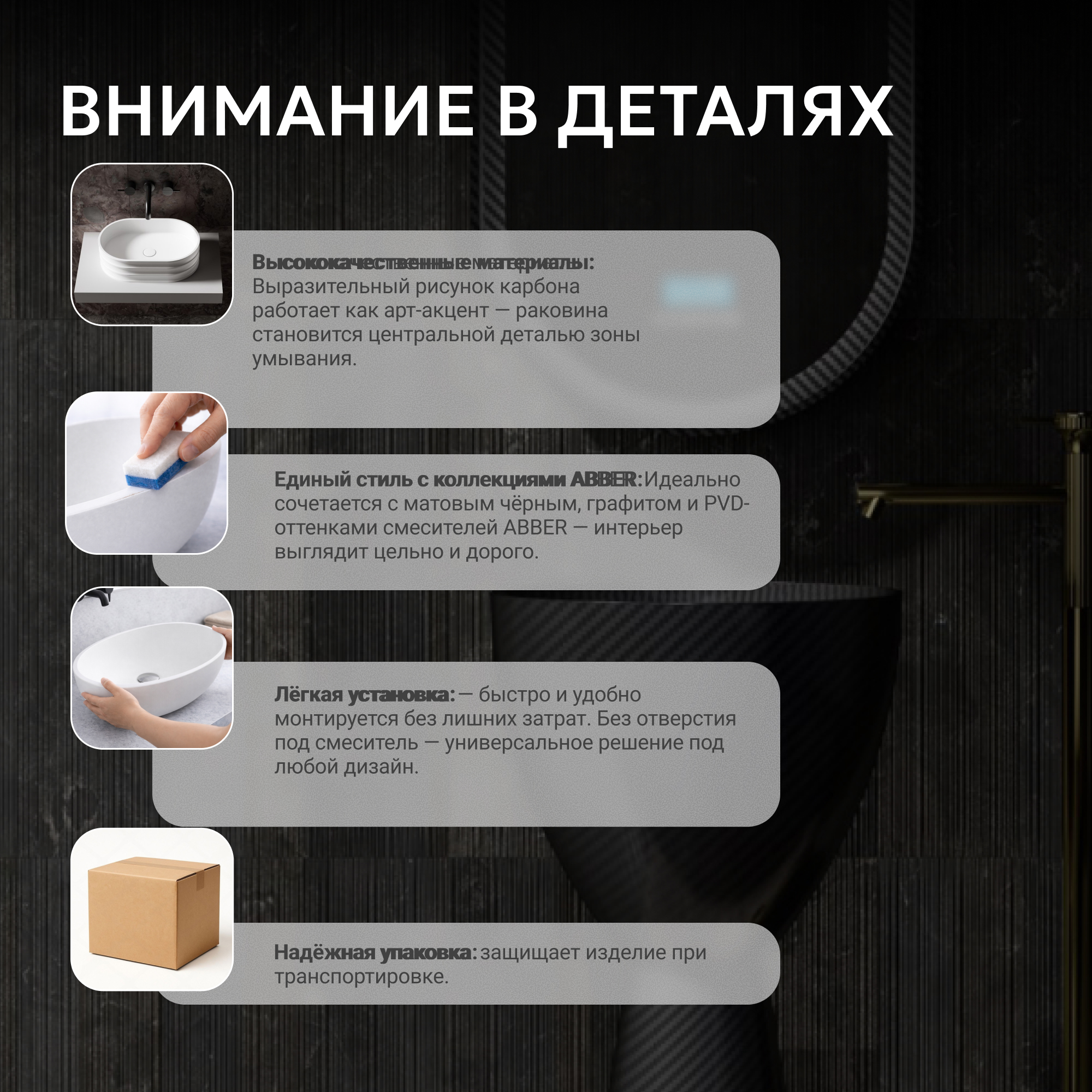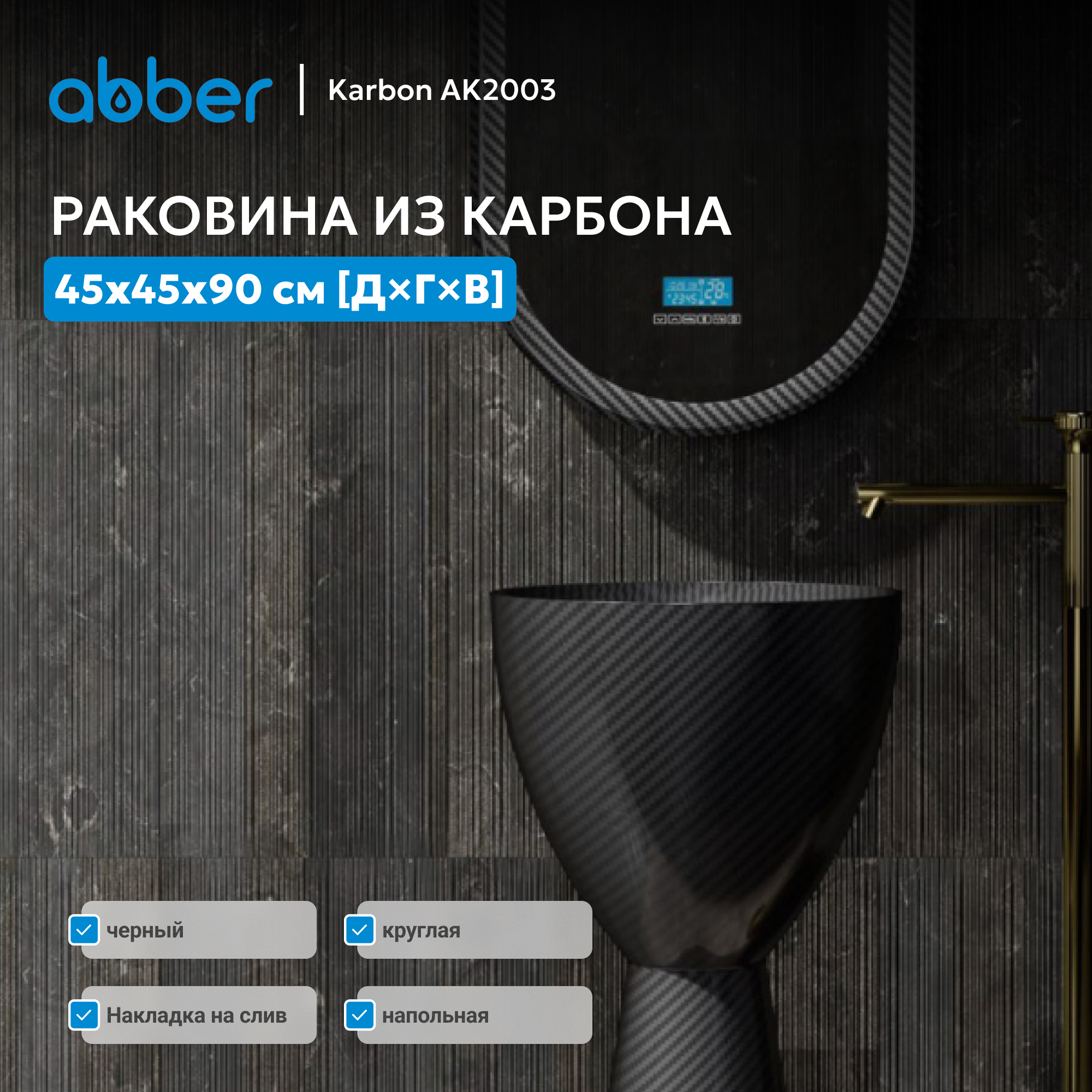 Раковина отдельностоящая карбоновая ABBER Karbon AK2003 черная