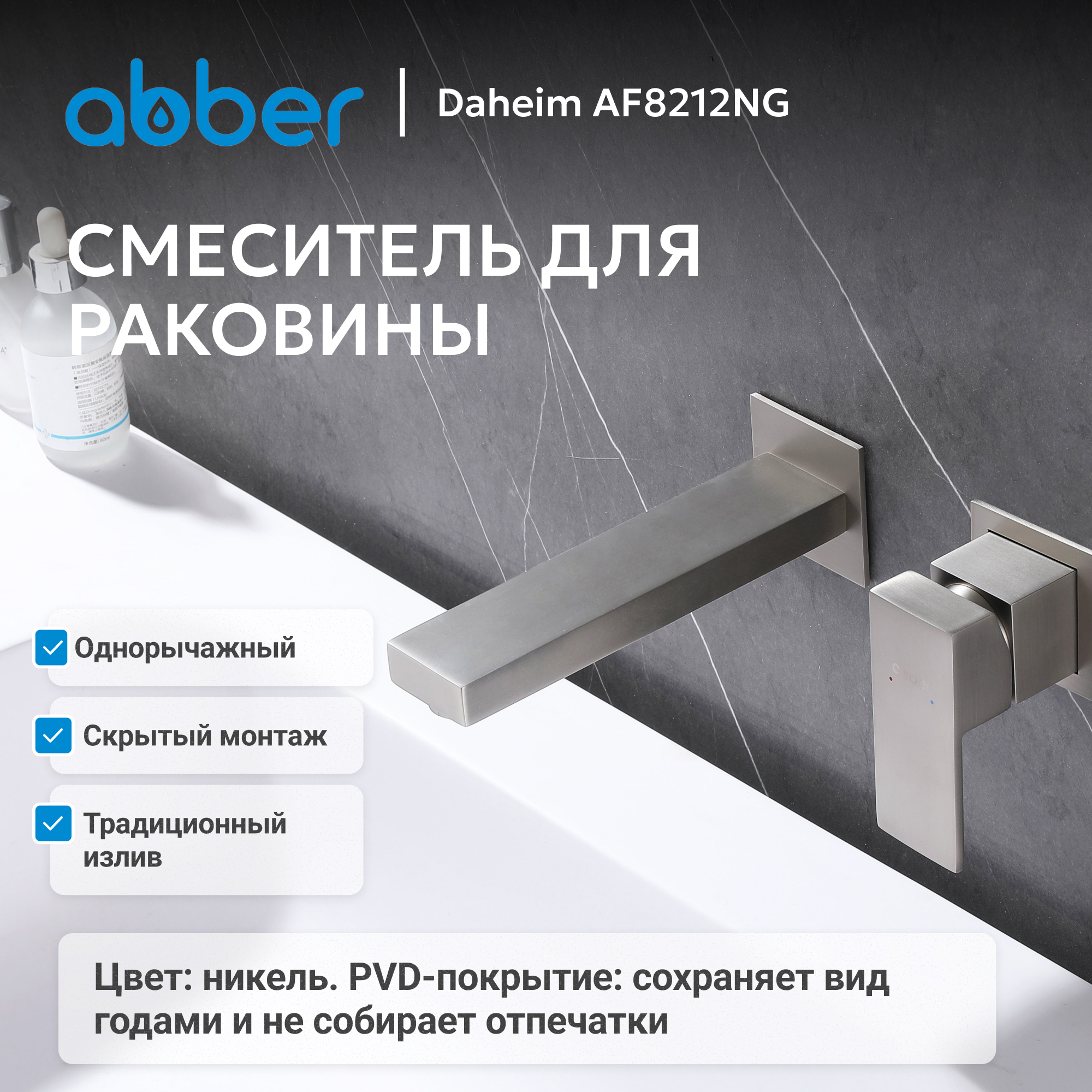 Смеситель ABBER Daheim AF8212NG для раковины скрытого монтажа, никель