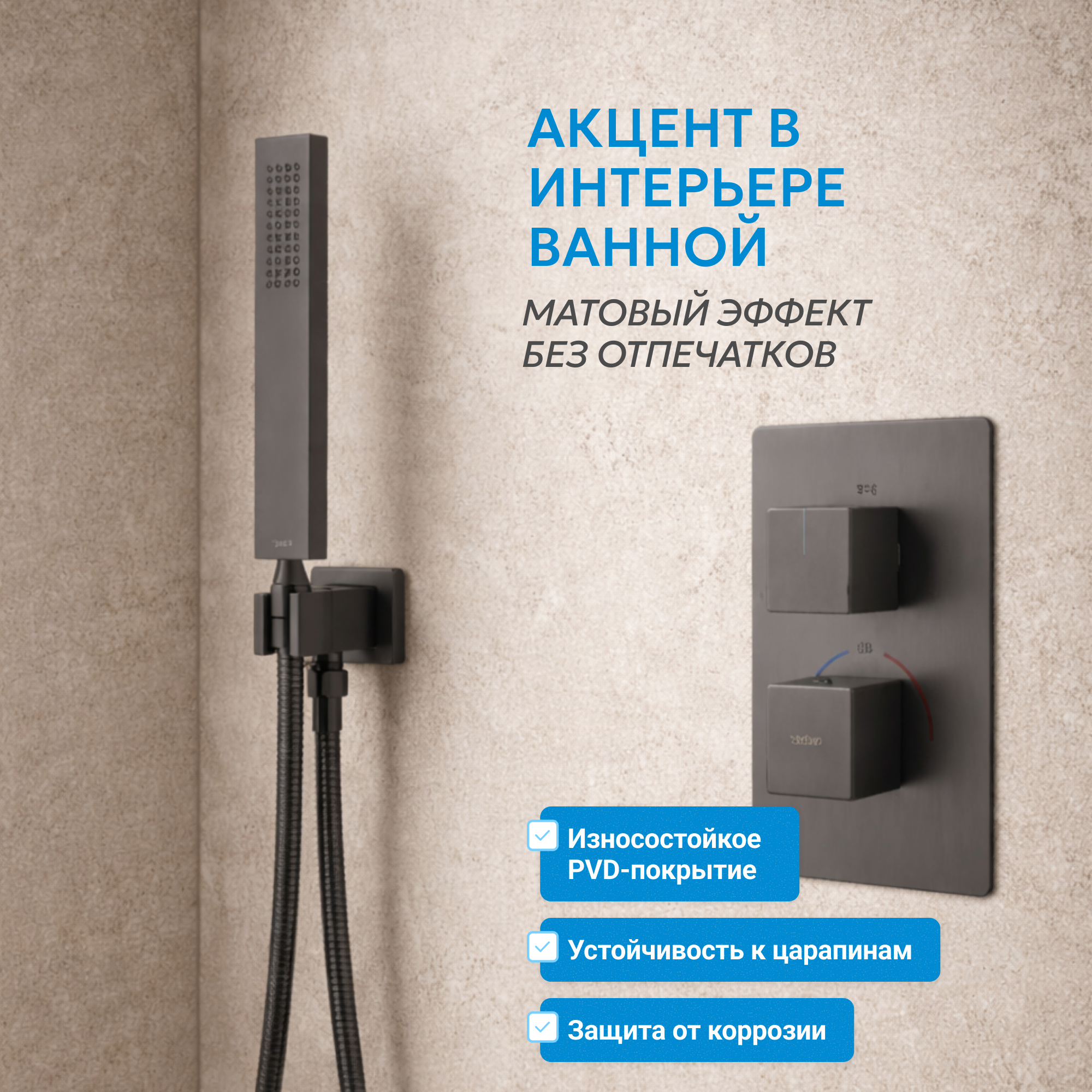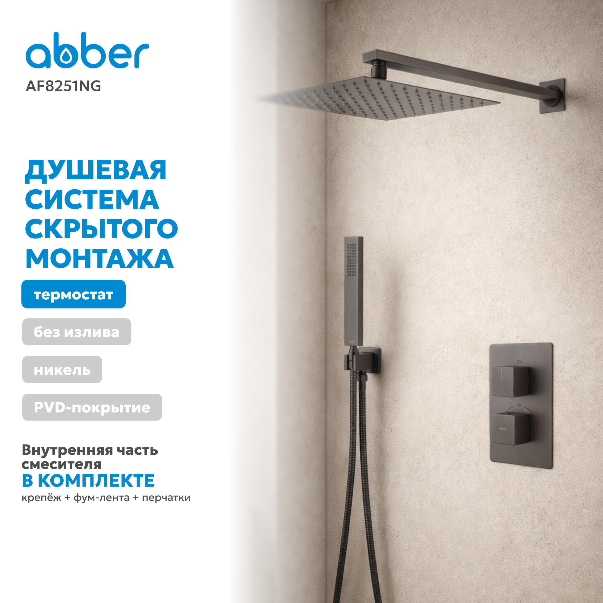 Душевые системы скрытого монтажа / Душевая система ABBER Daheim AF8251NG скрытого монтажа без излива, термостат, никель