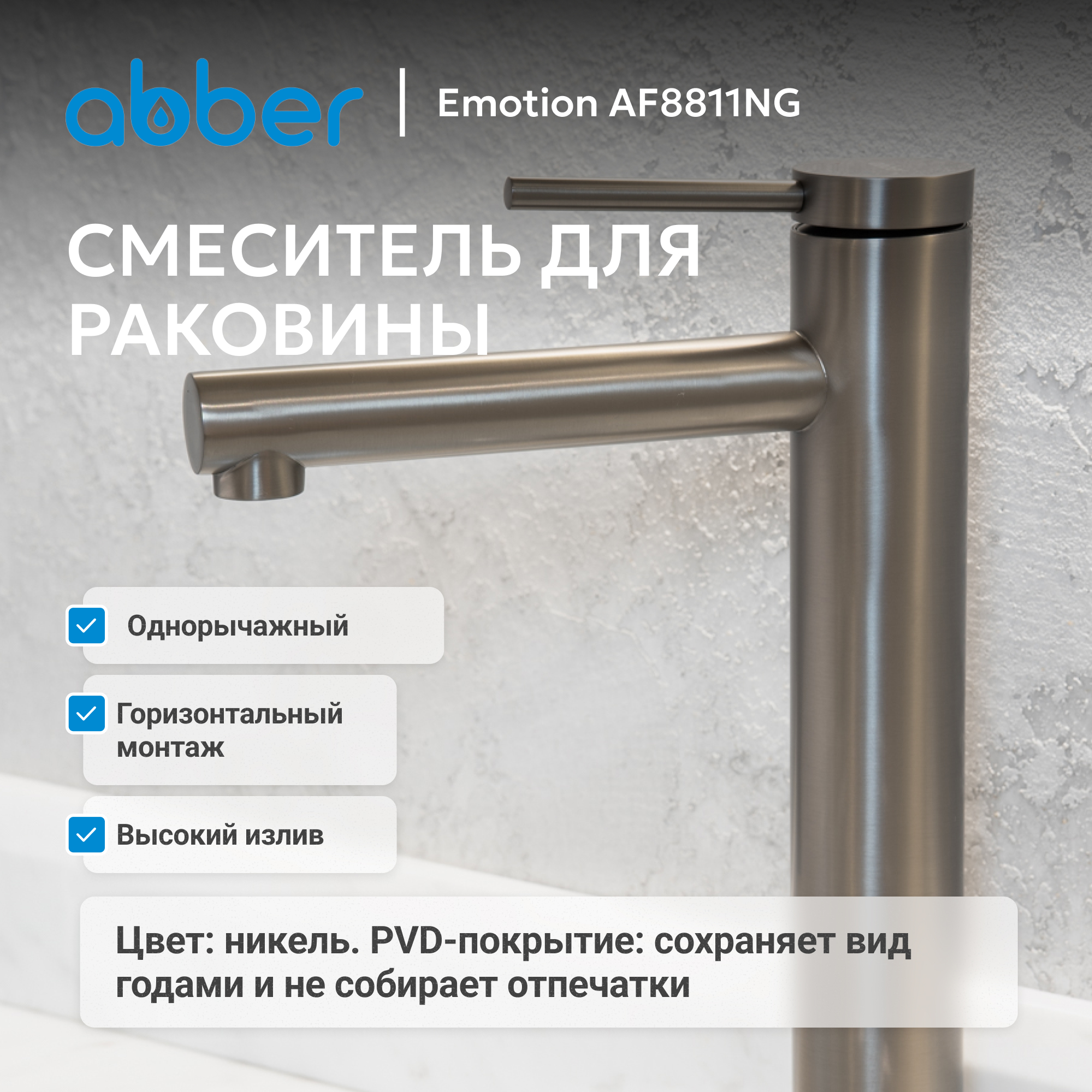 Смеситель ABBER Emotion AF8811NG для накладной раковины, никель