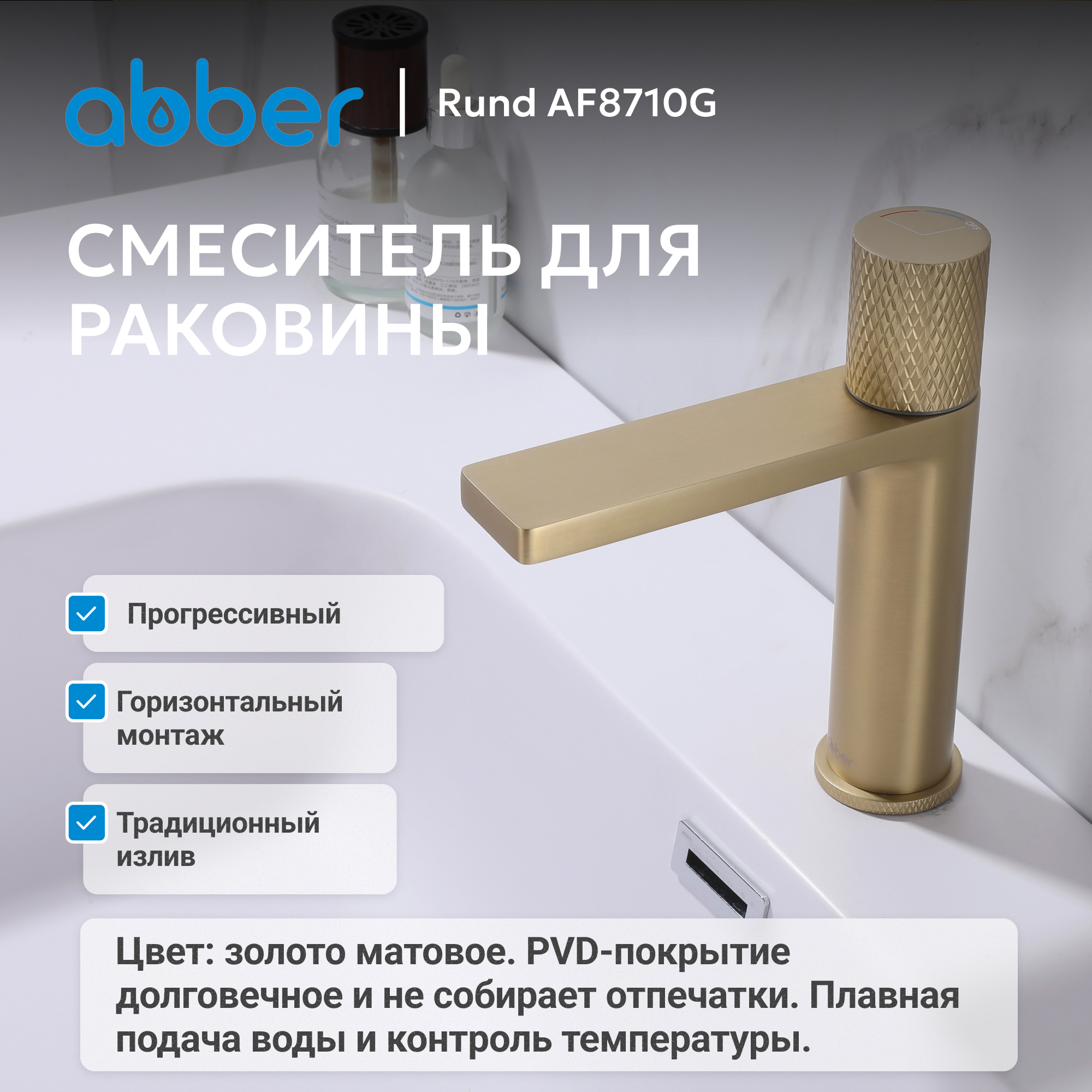 Смеситель ABBER Rund AF8710G для раковины, золото матовое