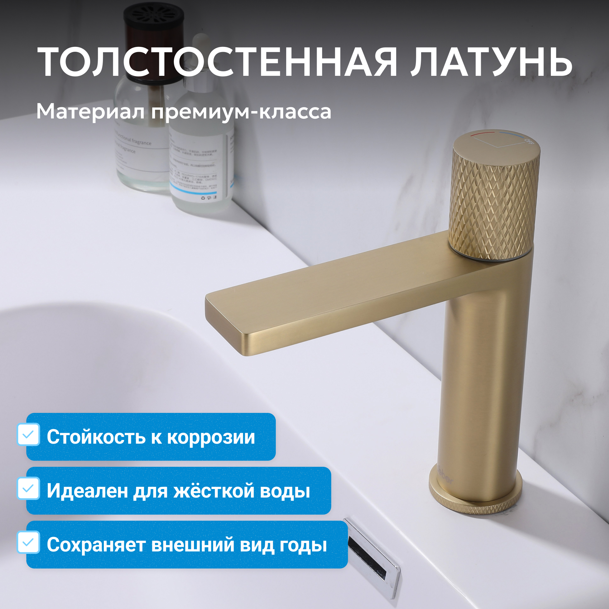 Корпус всех смесителей ABBER изготавливается из латуни техникой цельной отливки при атмосферном давлении, что обеспечивает высокую прочность изделия и устойчивость к перепадам давления.