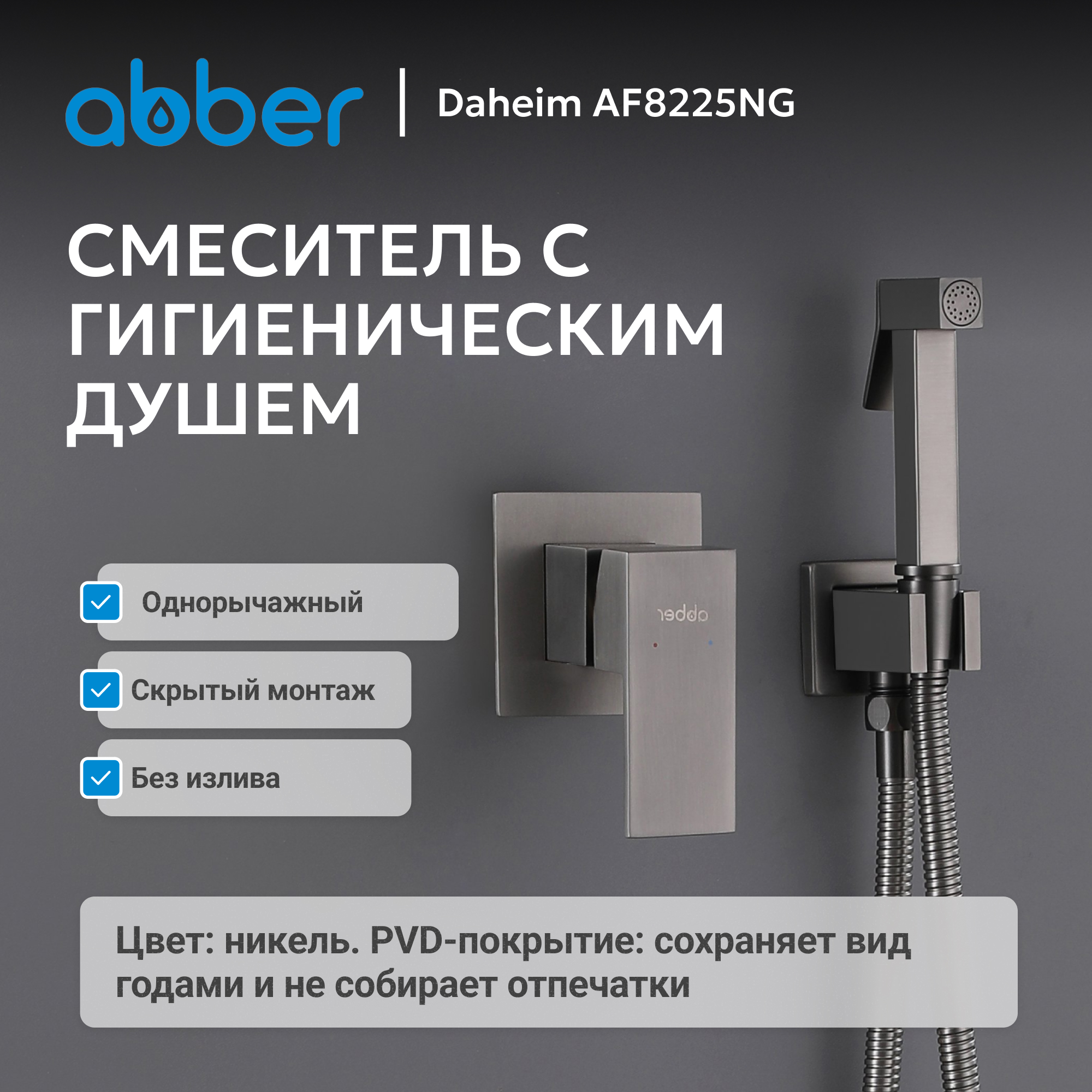 Смеситель ABBER Daheim AF8225NG с гигиеническим душем, никель