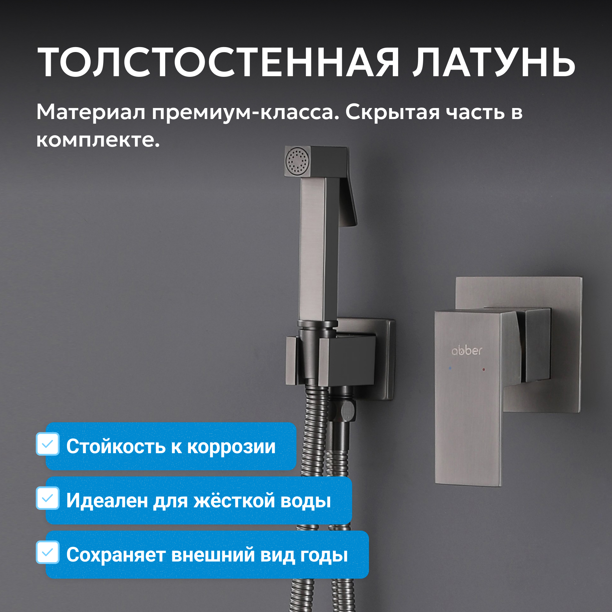 Корпус всех смесителей ABBER изготавливается из латуни техникой цельной отливки при атмосферном давлении, что обеспечивает высокую прочность изделия и устойчивость к перепадам давления.