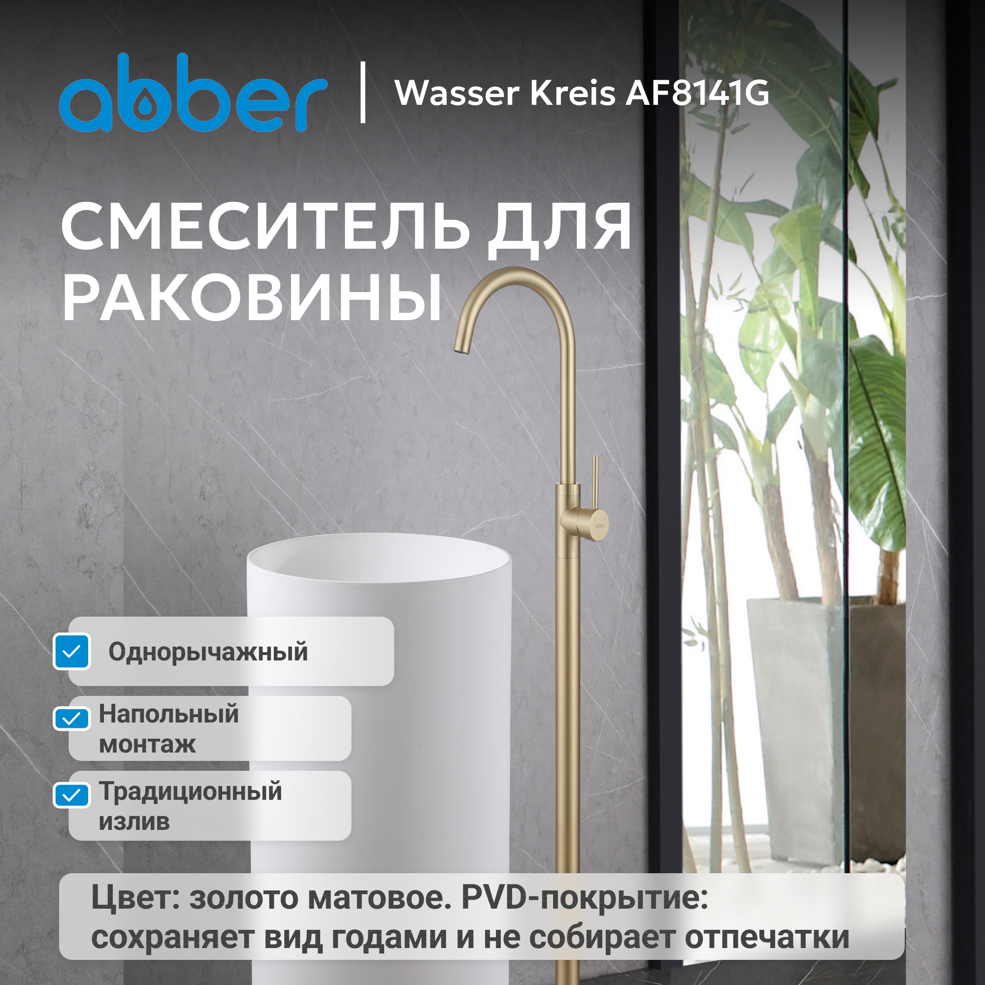 Смеситель ABBER Wasser Kreis AF8141G напольный для раковины, золото матовое