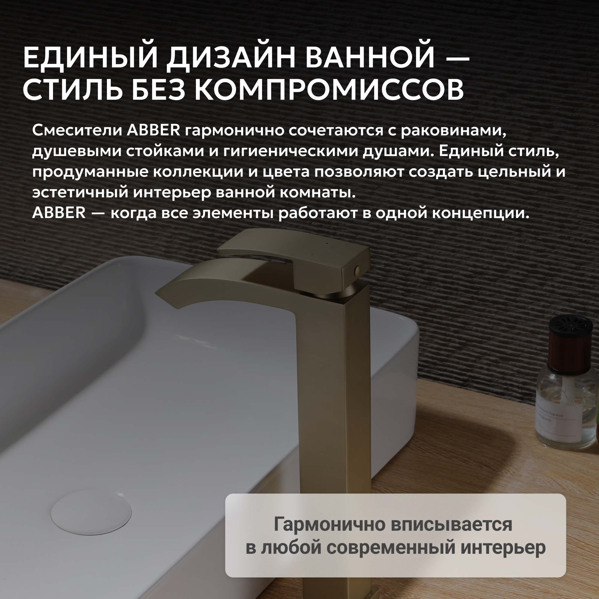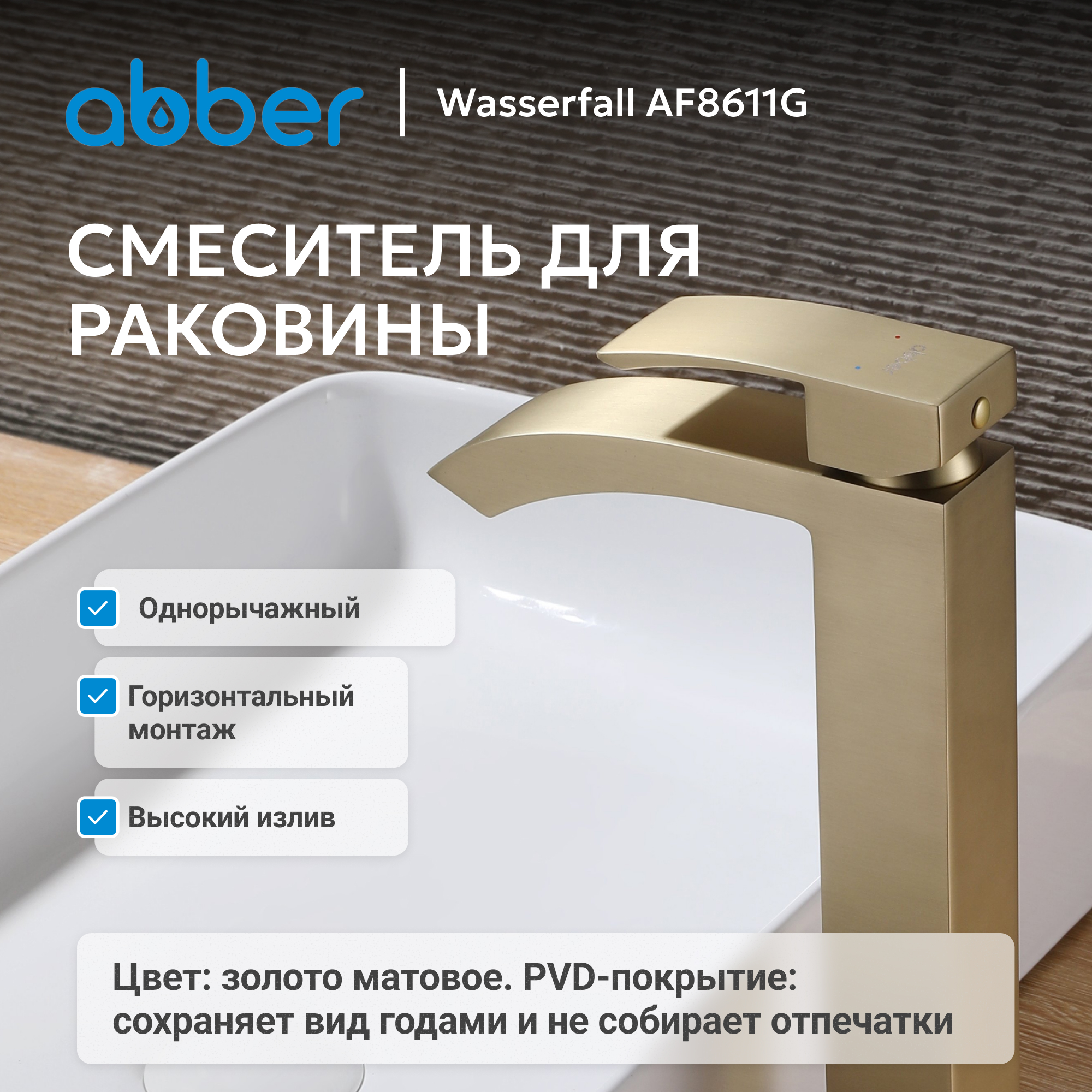 Смеситель ABBER Wasserfall AF8611G для накладной раковины, золото матовое